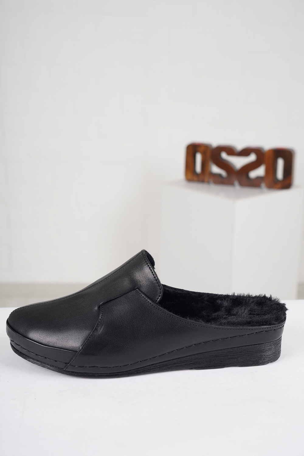 Hakiki Deri Siyah Kadın Burun Kapalı Sabo 222177602