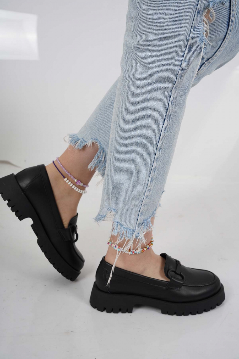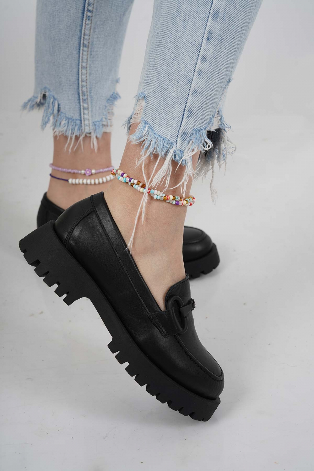 Hakiki Deri Siyah Kadın Casual Ayakkabı 231108121