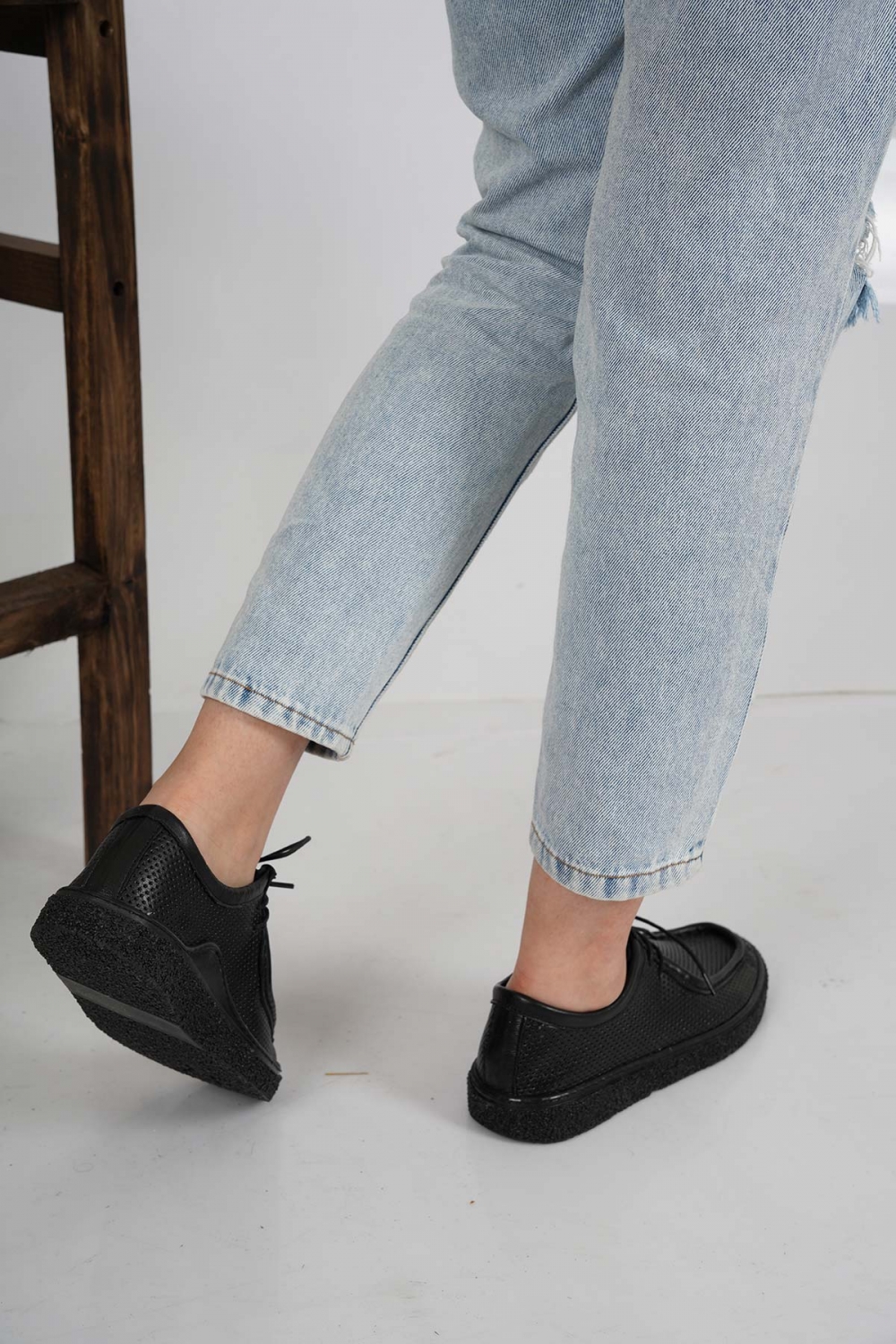 Hakiki Deri Siyah Kadın Casual Ayakkabı 231220107