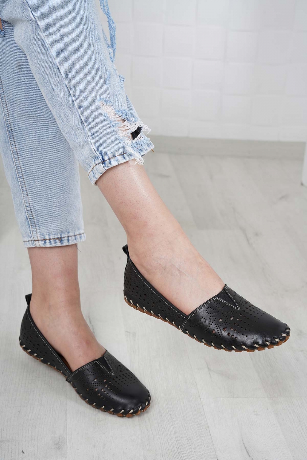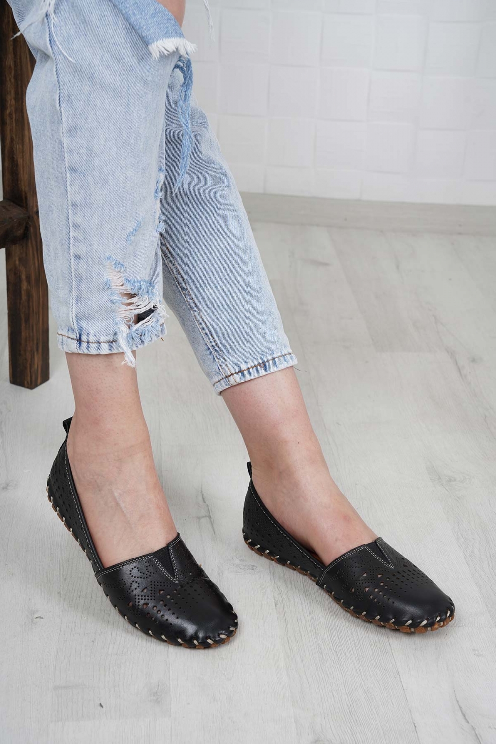 Hakiki Deri Siyah Kadın Comfort Ayakkabı 231220103
