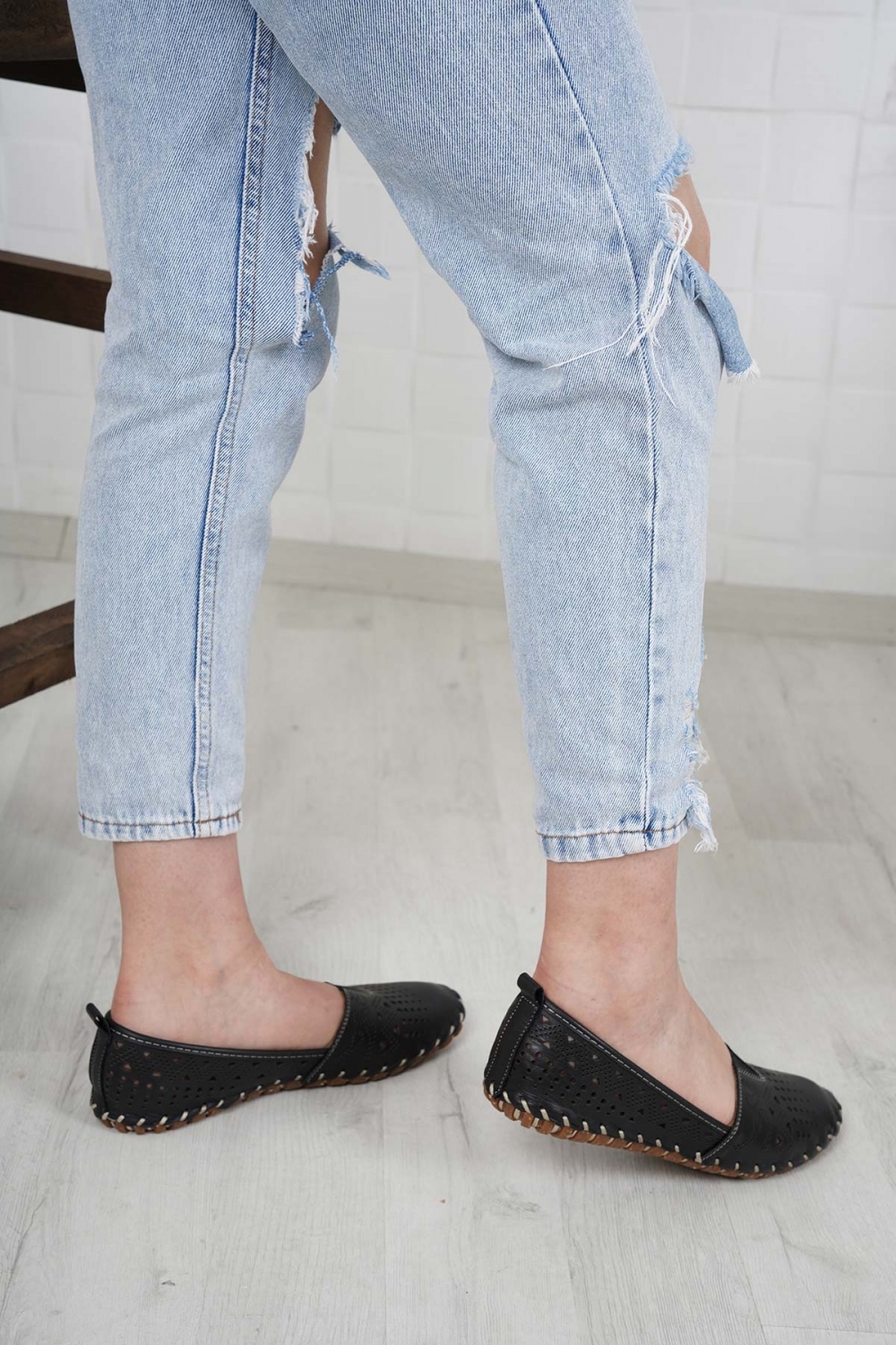 Hakiki Deri Siyah Süet Kadın Casual Ayakkabı 261108105