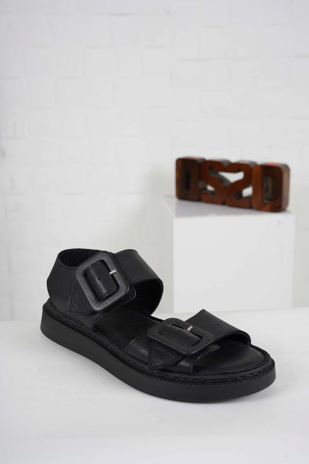Hakiki Deri Siyah Kadın Comfort Sandalet 241224506