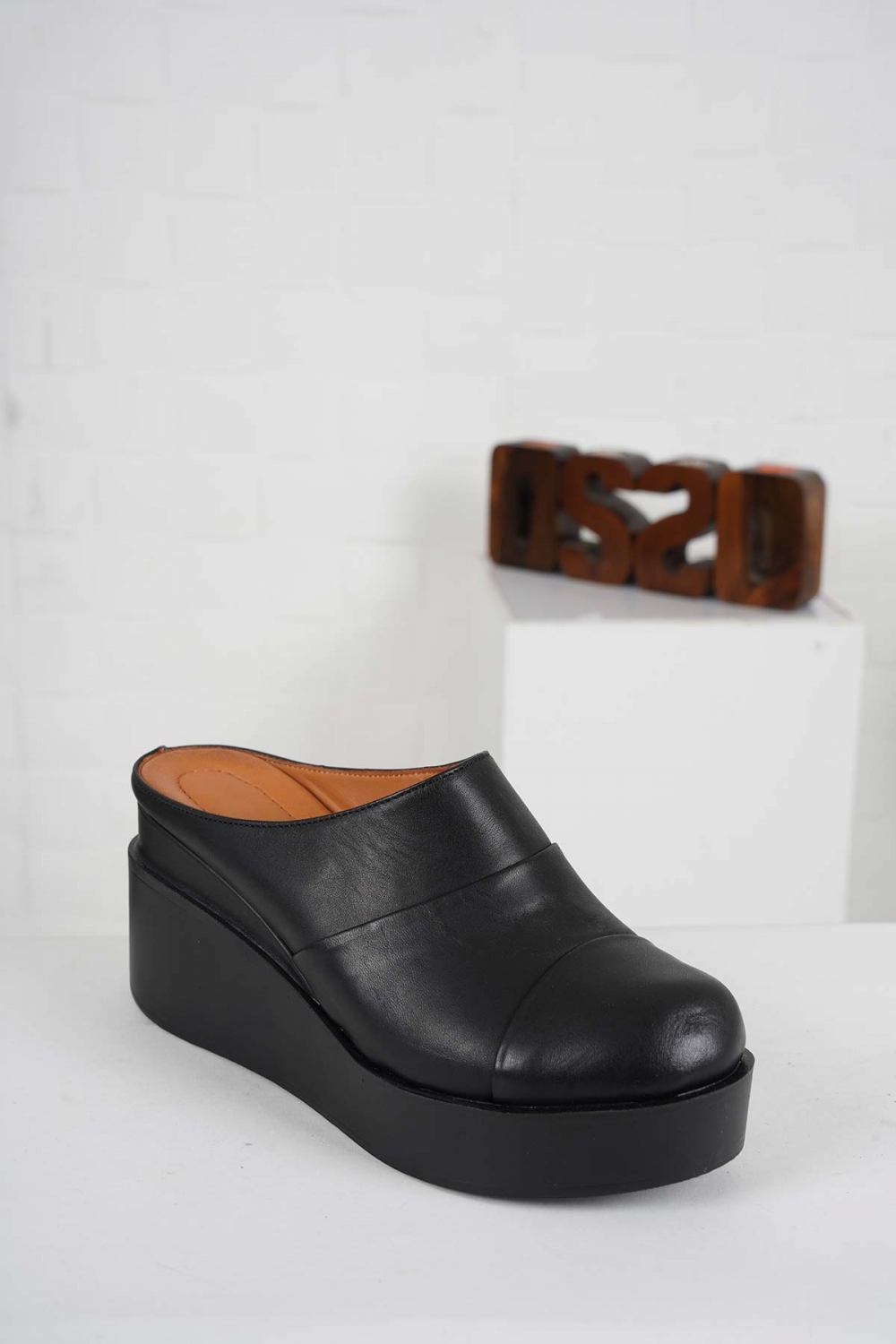 Hakiki Deri Siyah Kadın Dolgu Topuk Sabo 241229701