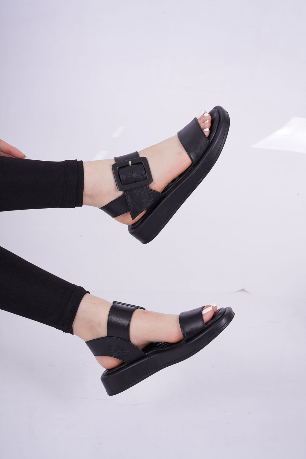 Hakiki Deri Siyah Kadın Düz Sandalet 251103511