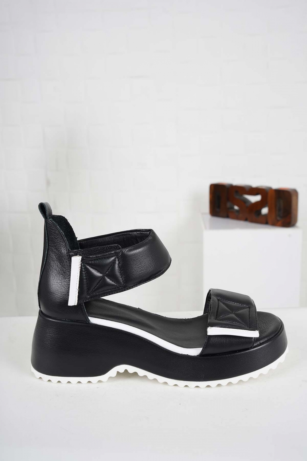 Hakiki Deri Siyah Kadın Dolgu Topuk Sandalet 241135503
