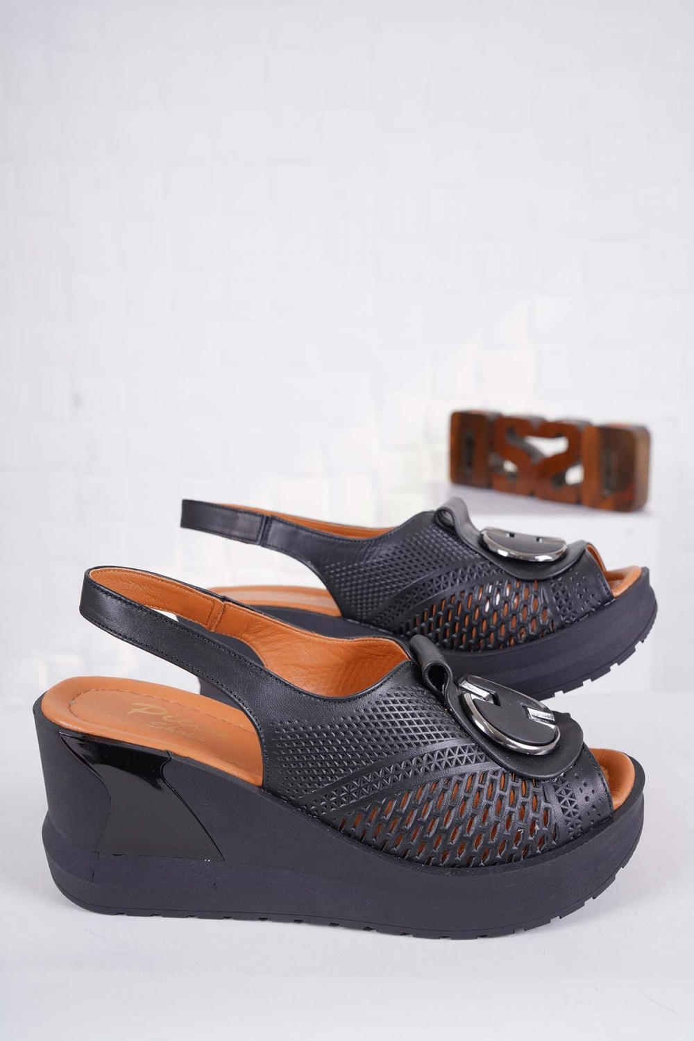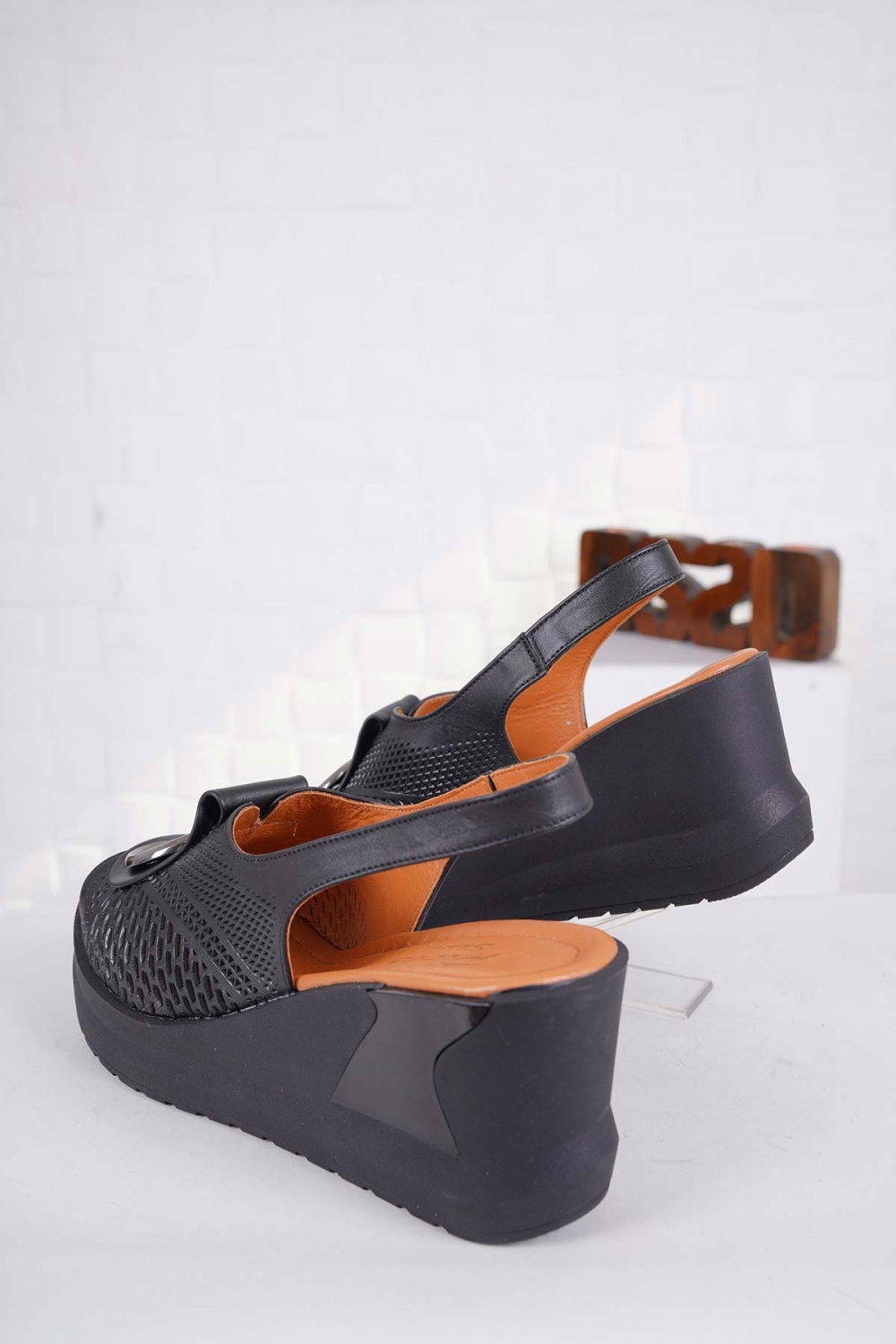 Hakiki Deri Siyah Kadın Dolgu Topuk Sandalet 241229521