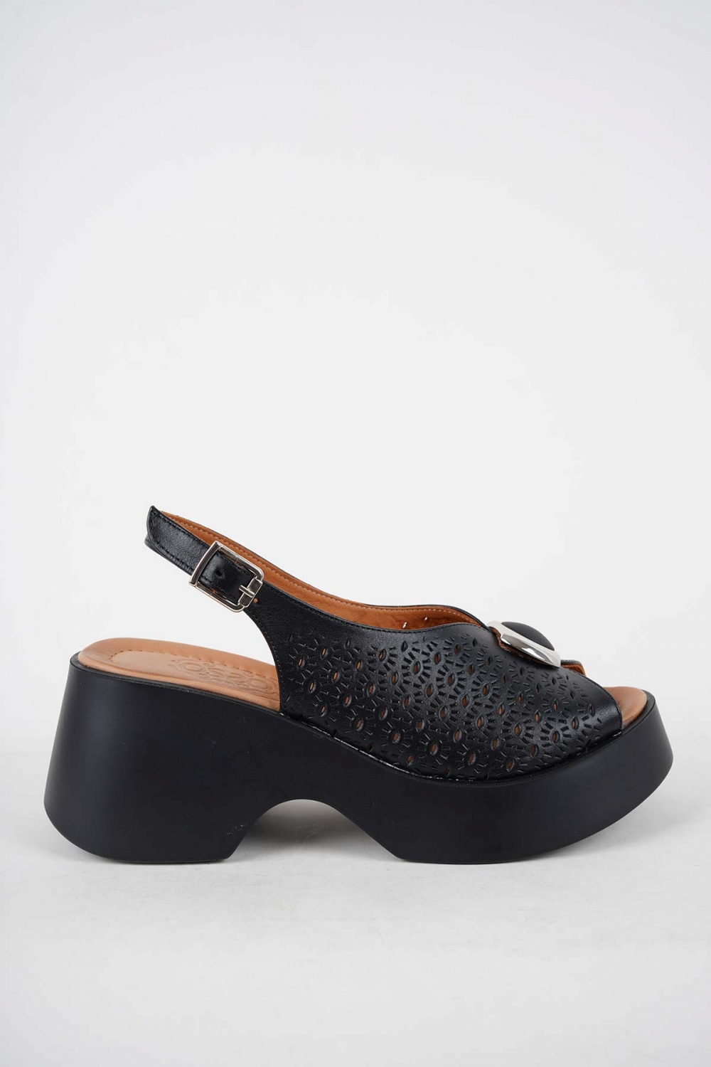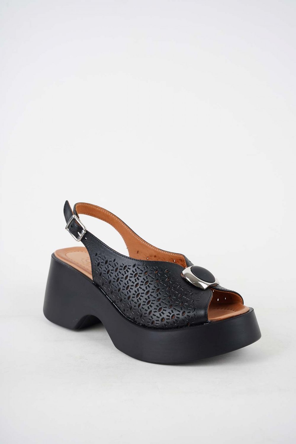 Hakiki Deri Siyah Kadın Dolgu Topuk Sandalet 241229521