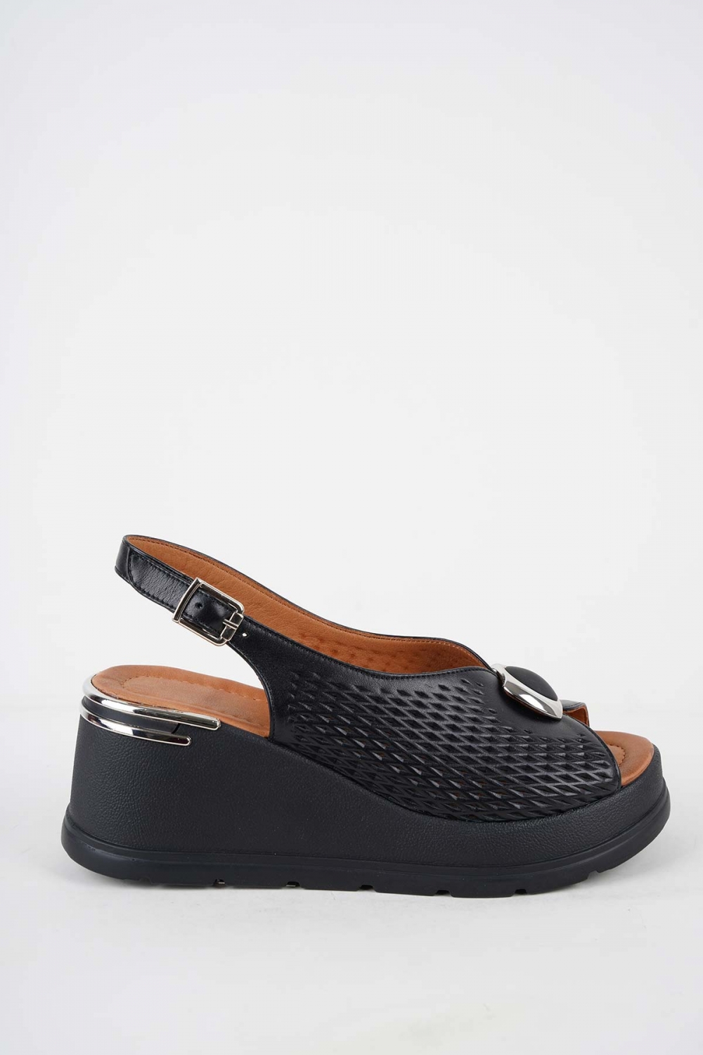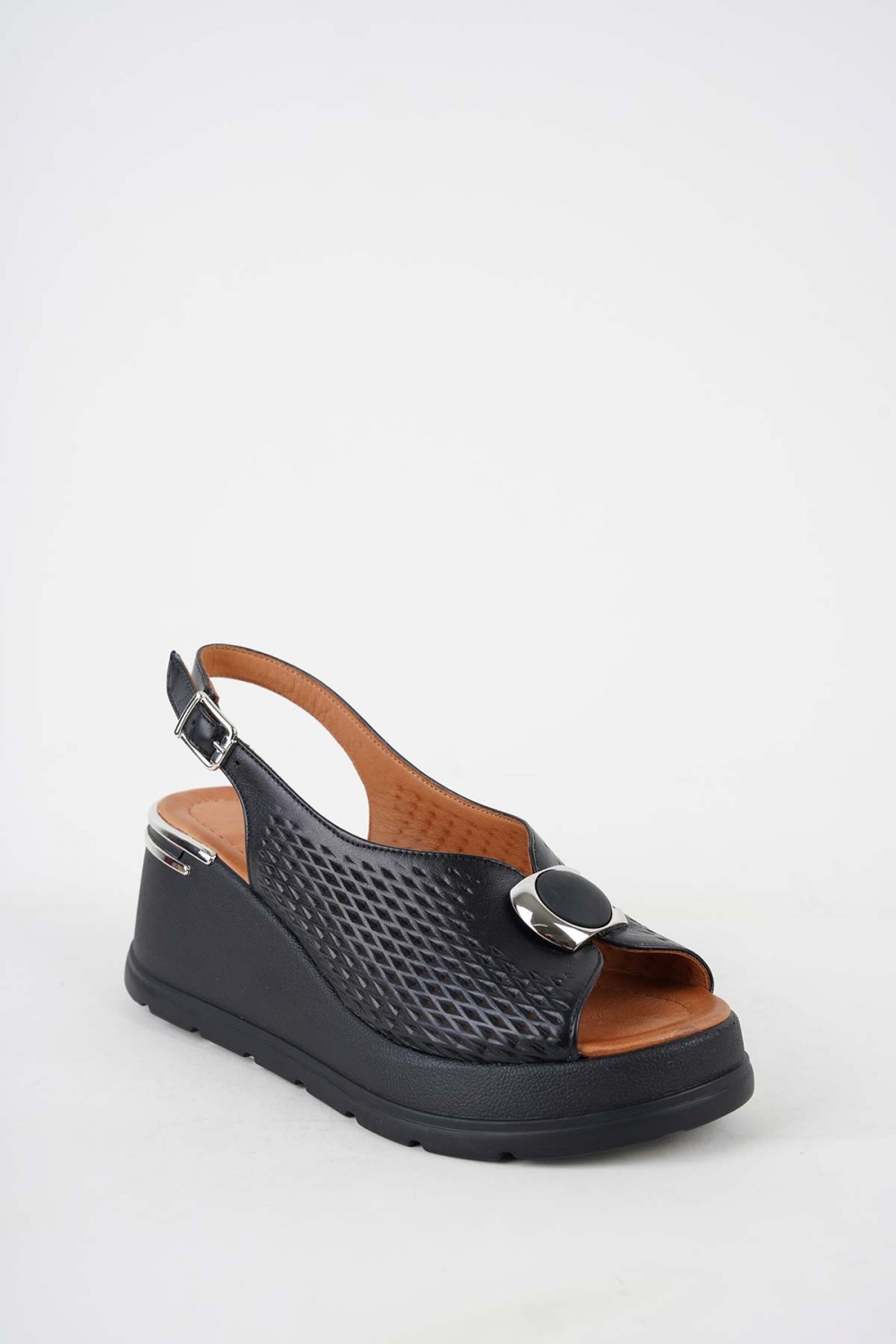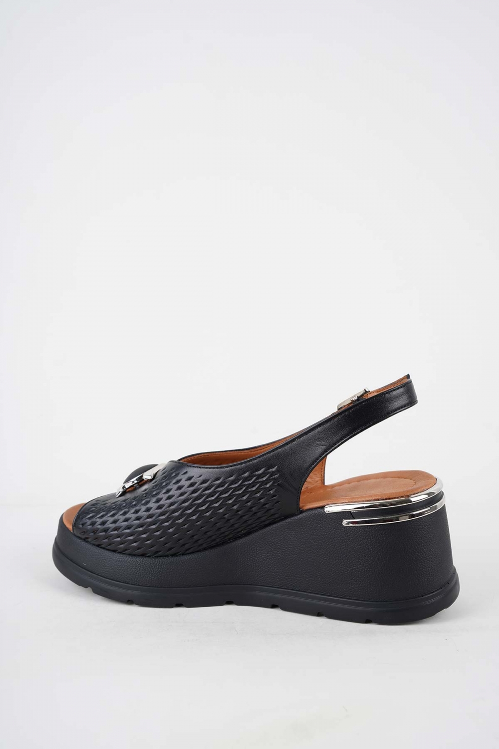 Hakiki Deri Siyah Kadın Dolgu Topuk Sandalet 251229505