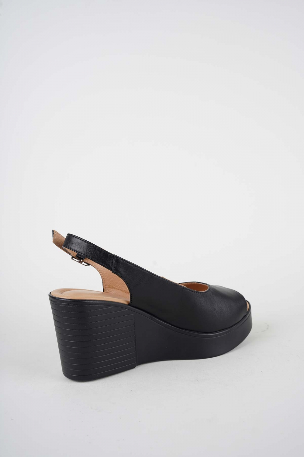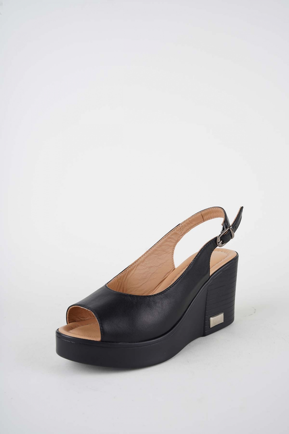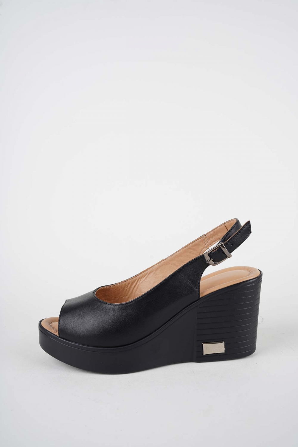 Hakiki Deri Siyah Kadın Dolgu Topuk Sandalet 261189502