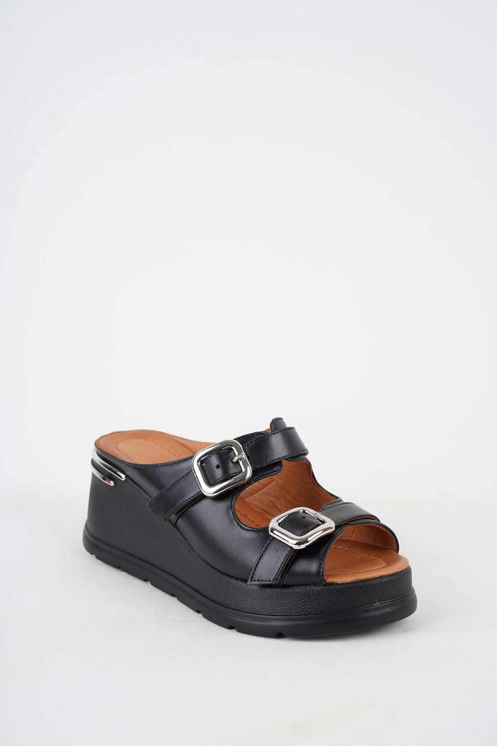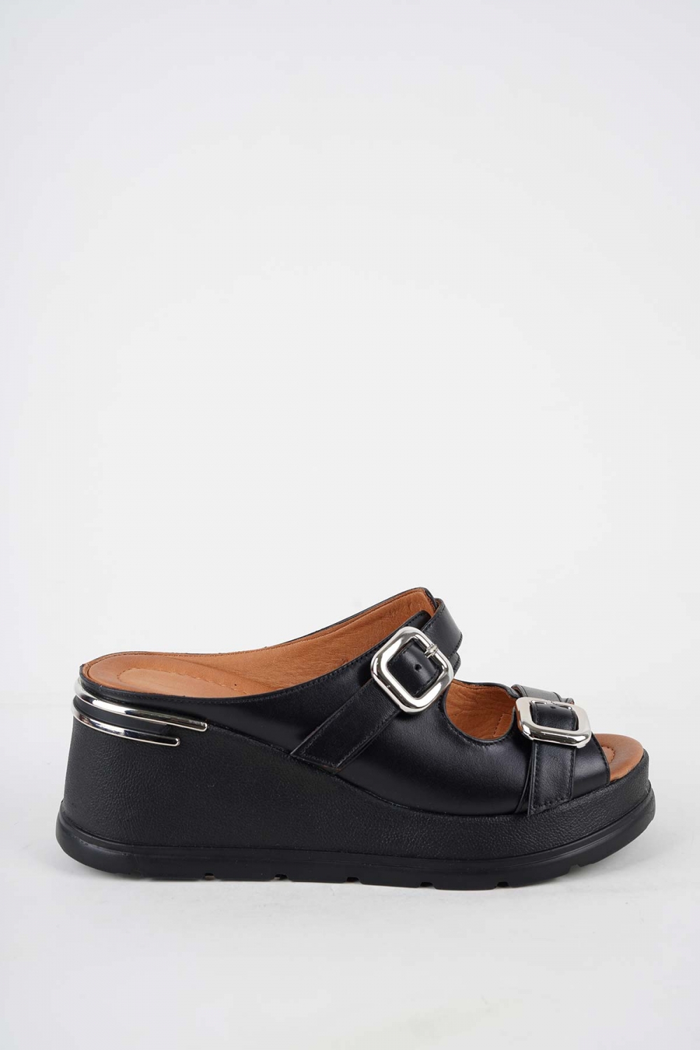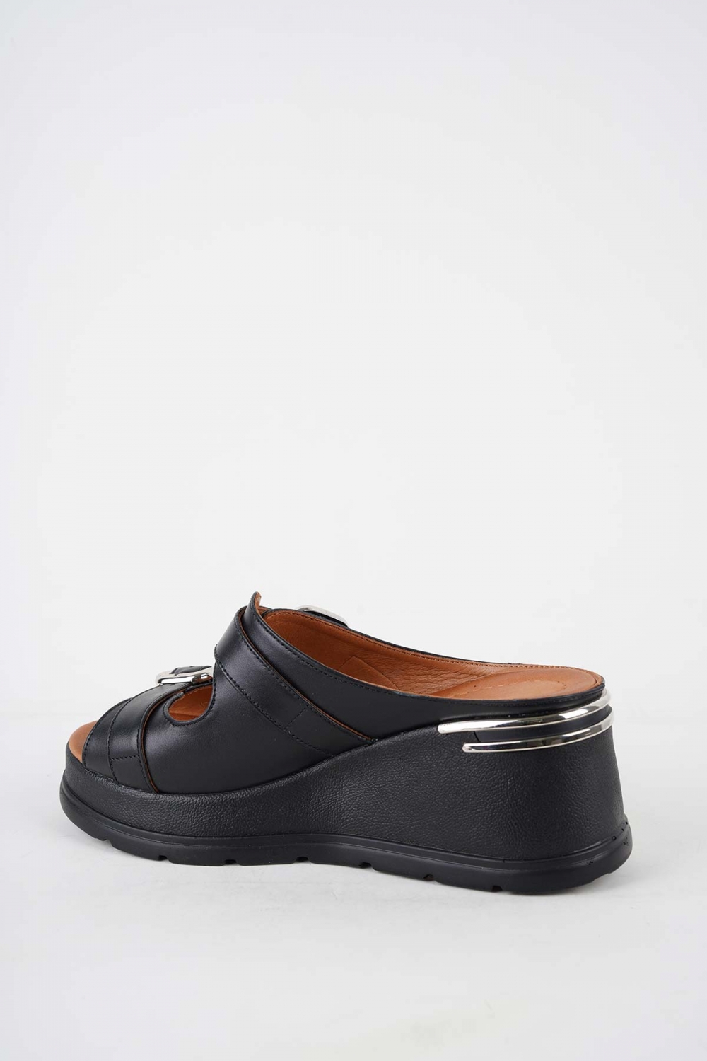 Hakiki Deri Siyah Kadın Dolgu Topuk Terlik 251229601