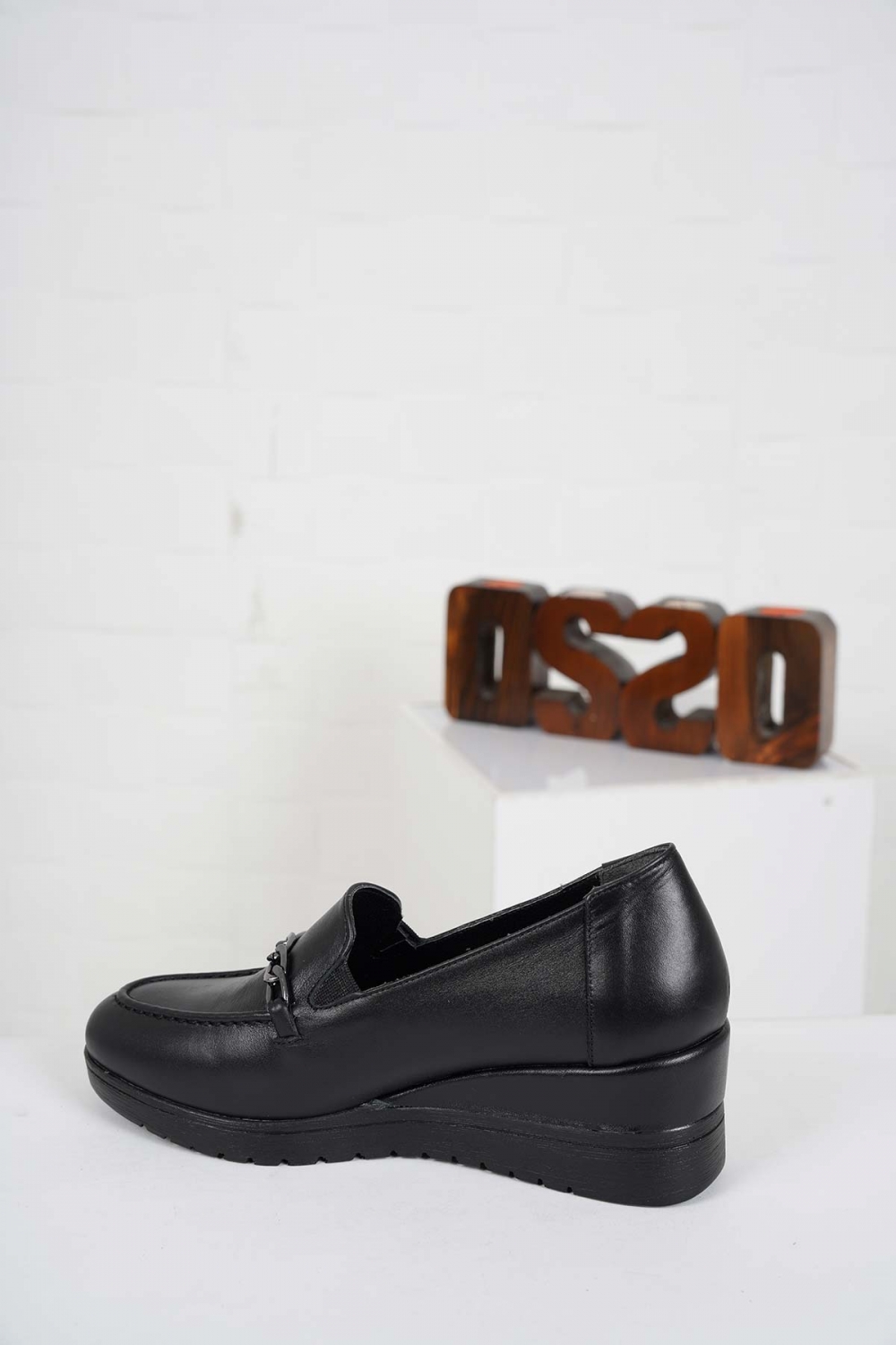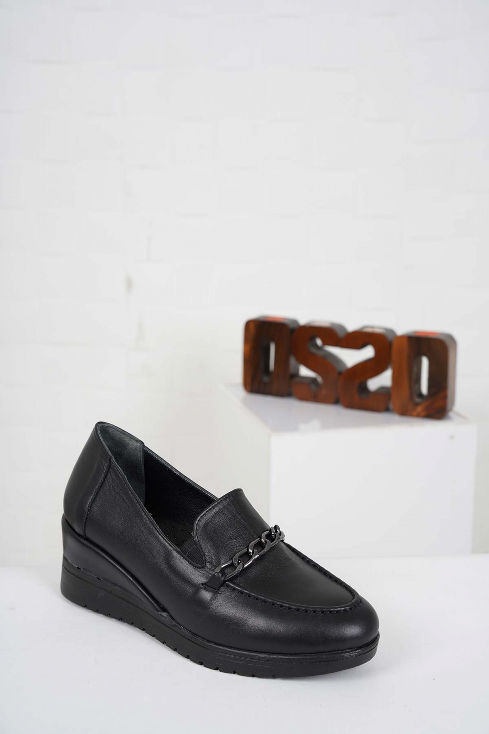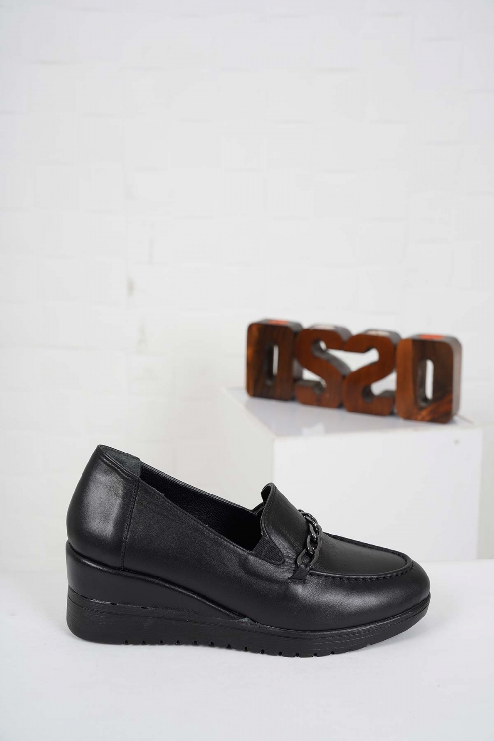 Hakiki Deri Siyah Kadın Dolgu Topuklu Ayakkabı 261229103