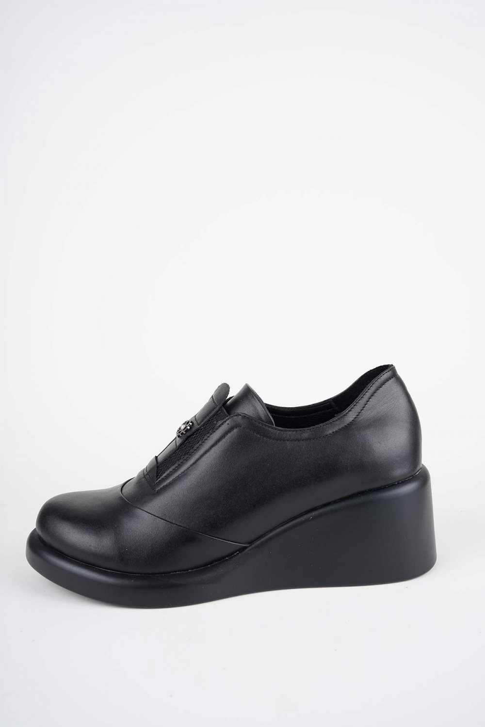 Hakiki Deri Siyah Kadın Dolgu Topuklu Ayakkabı 261229103