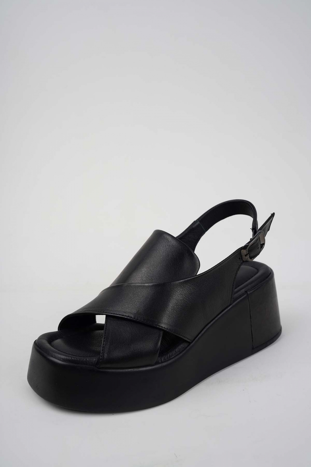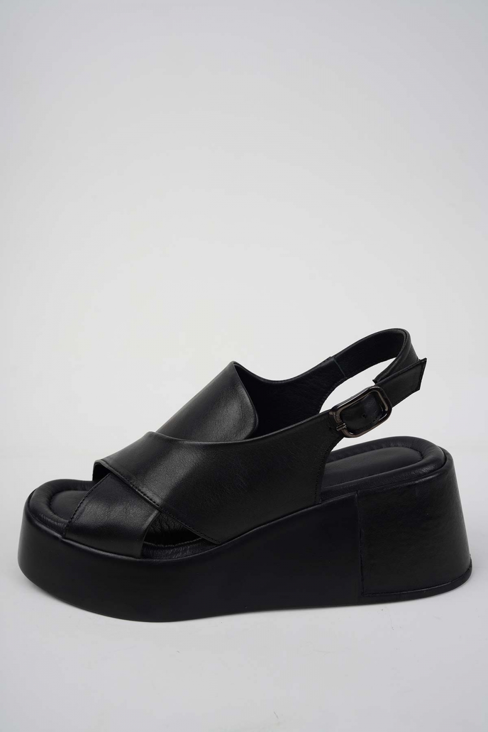 Hakiki Deri Siyah Kadın Dolgu Topuklu Sandalet 251141505