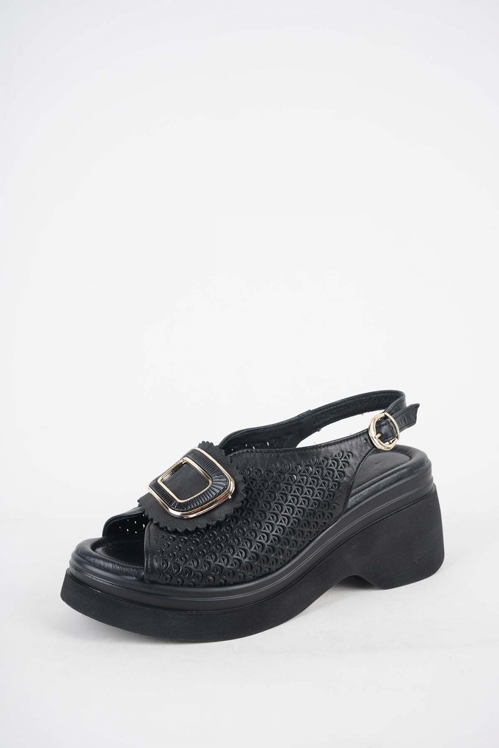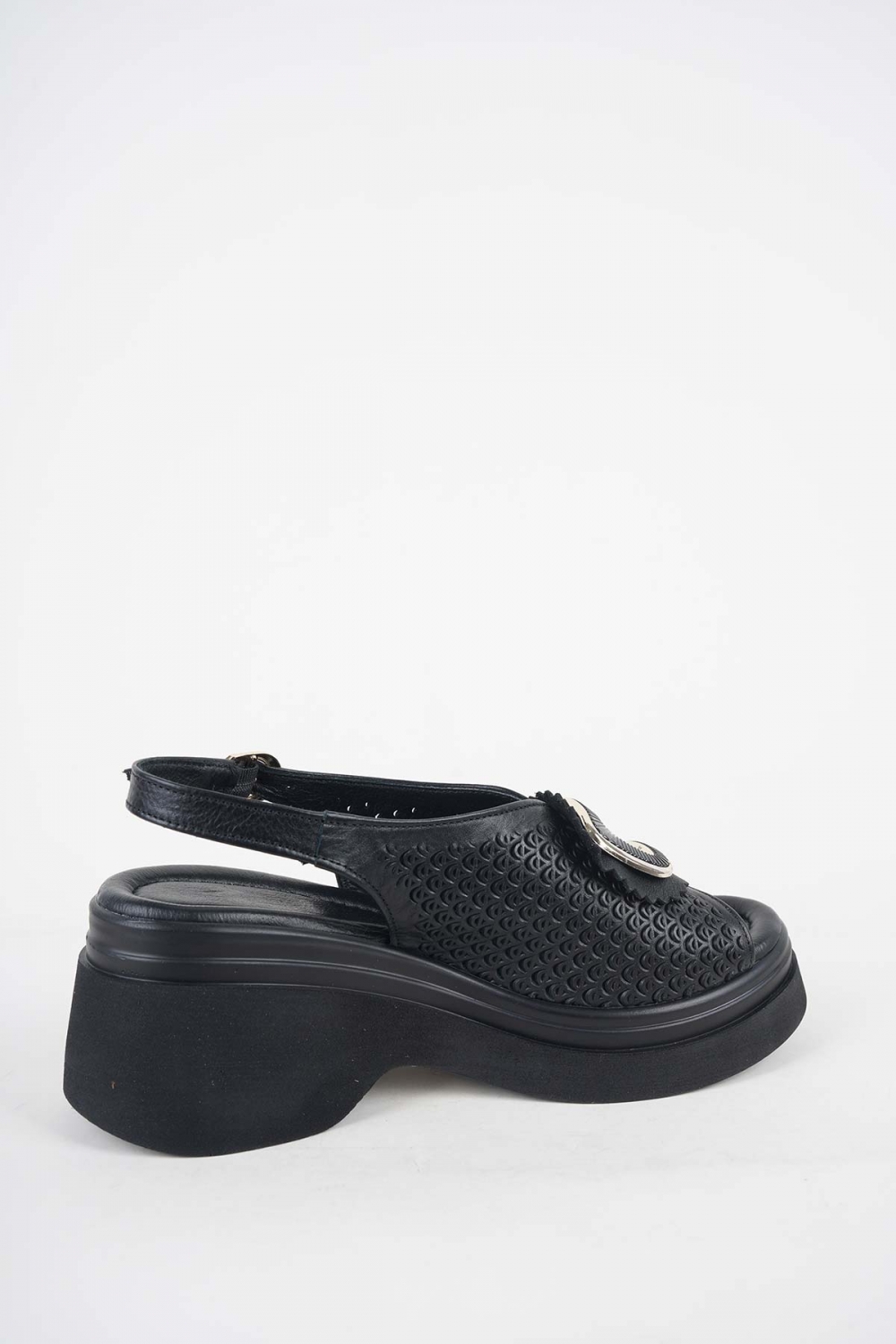 Hakiki Deri Siyah Kadın Dolgu Topuklu Sandalet 251186501