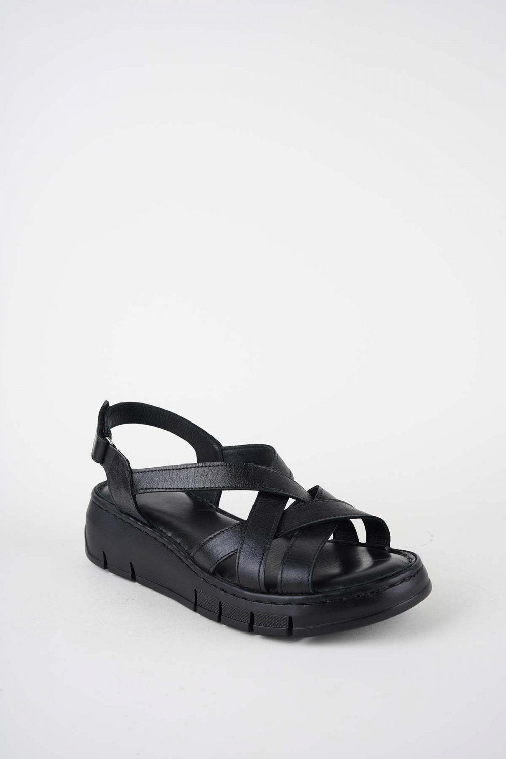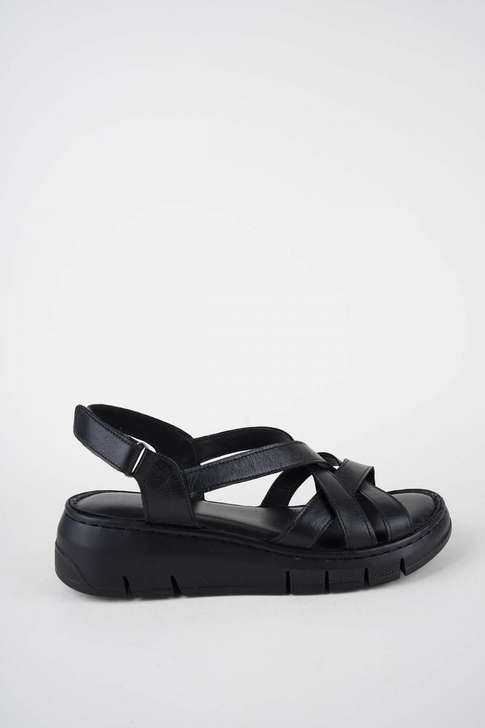 Hakiki Deri Siyah Kadın Dolgu Topuklu Sandalet 261245503