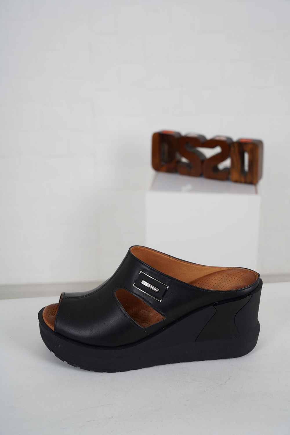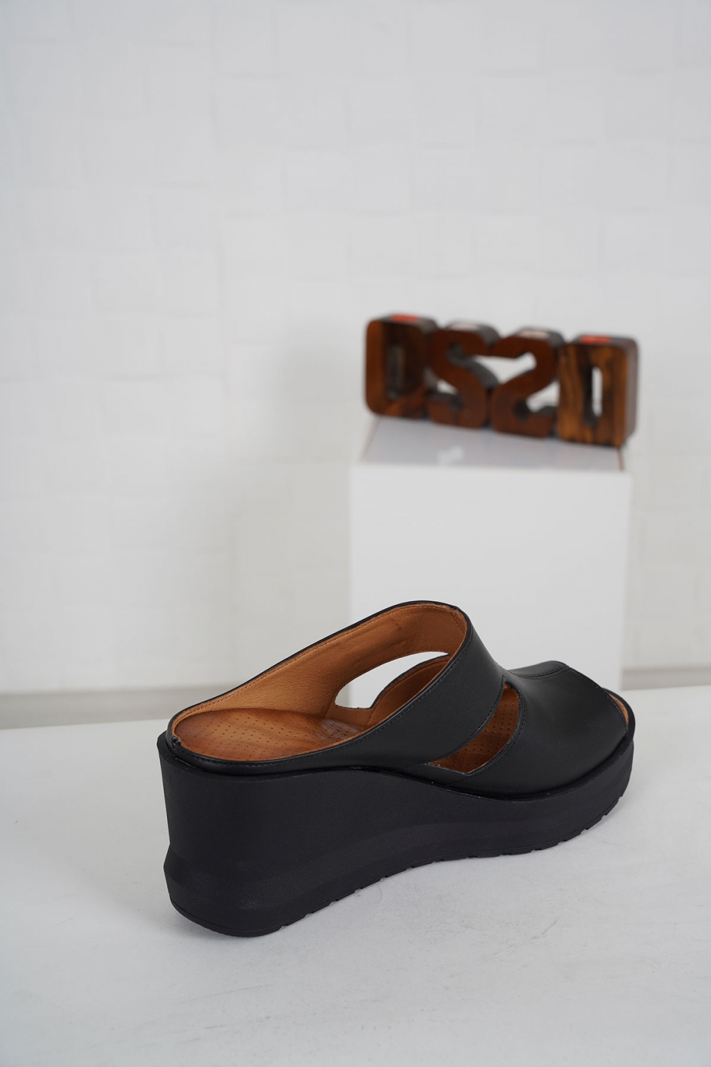Hakiki Deri Siyah Kadın Dolgu Topuklu Terlik 231229601