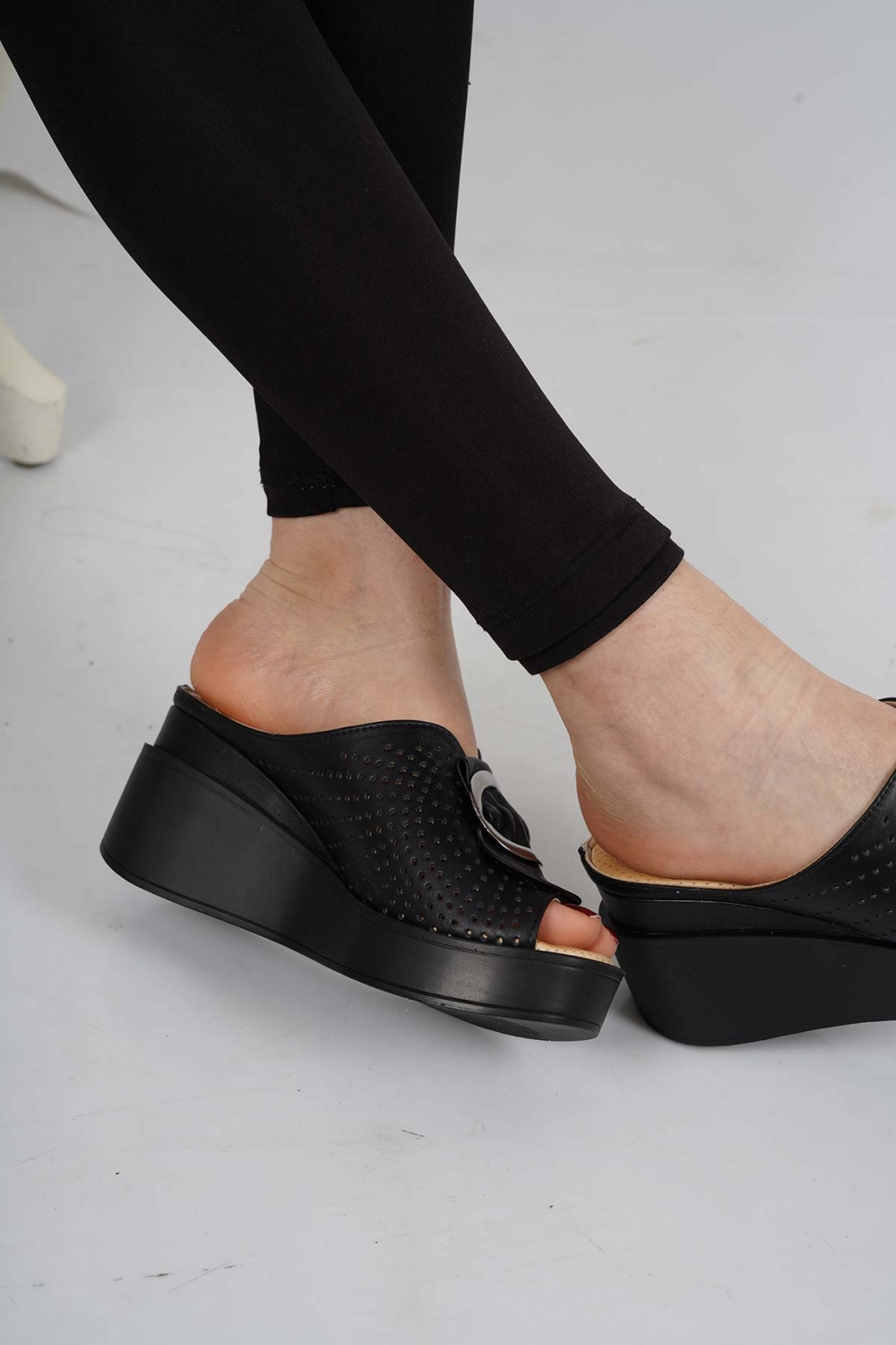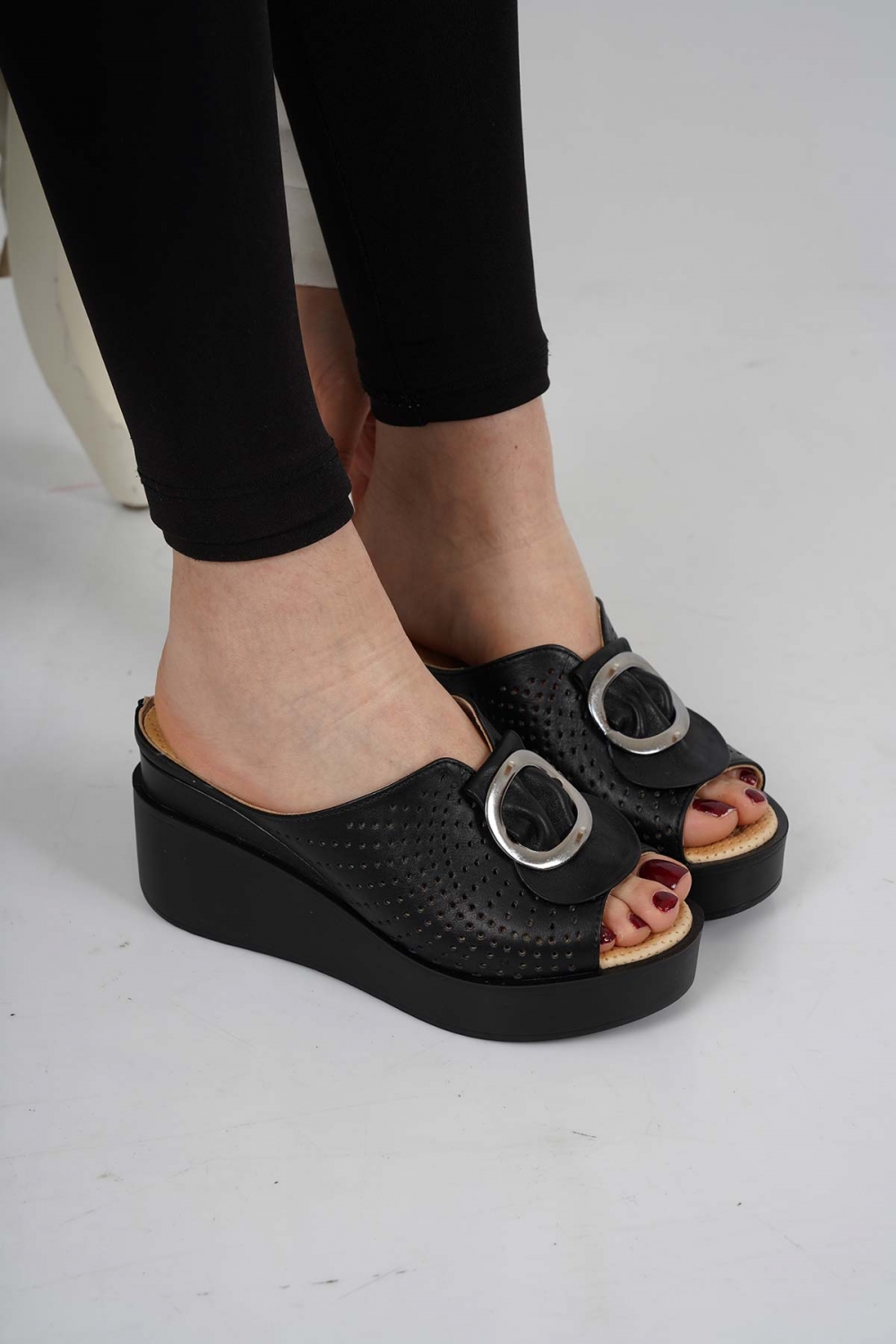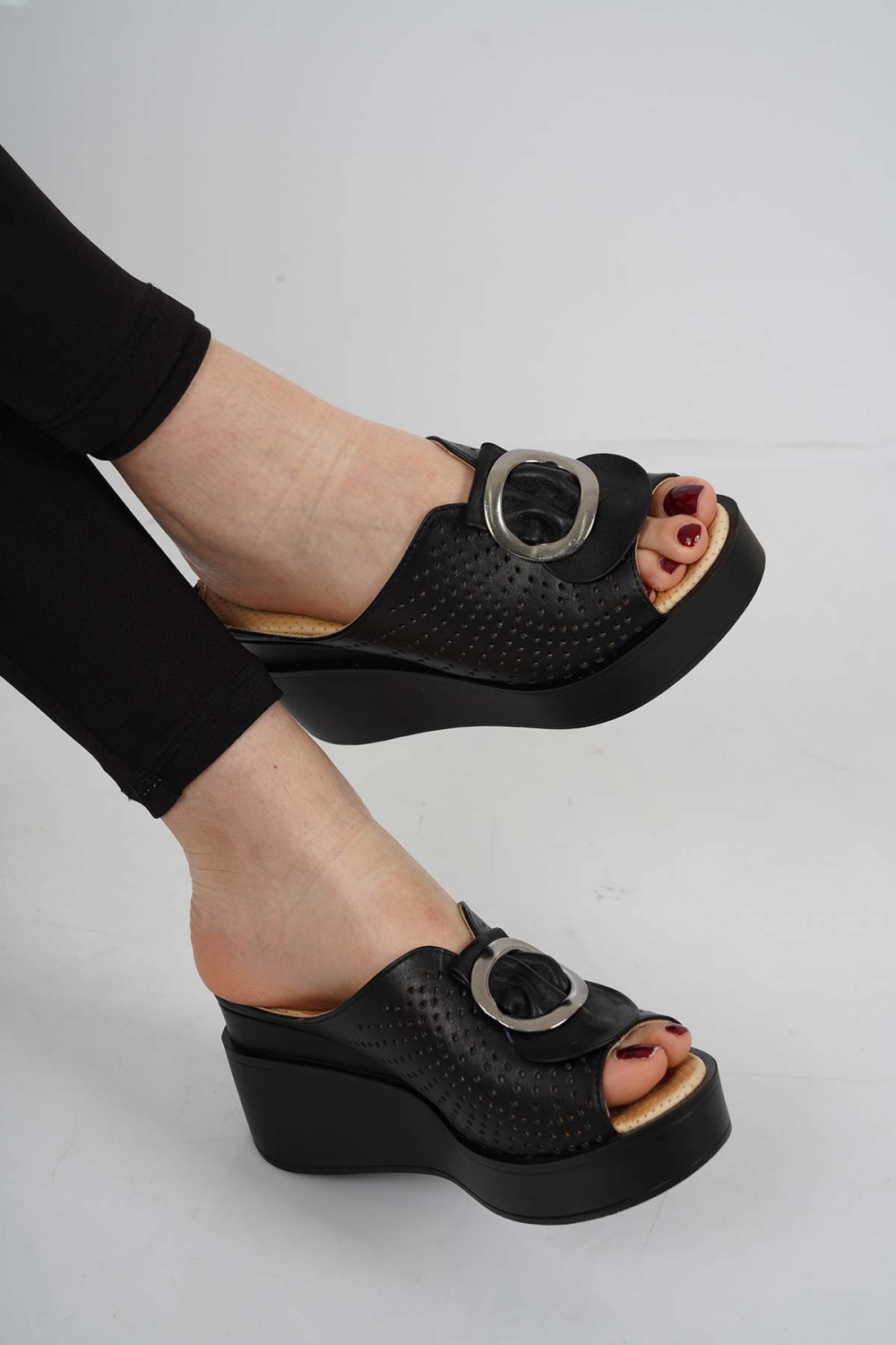 Hakiki Deri Siyah Kadın Dolgu Topuklu Terlik 231229608