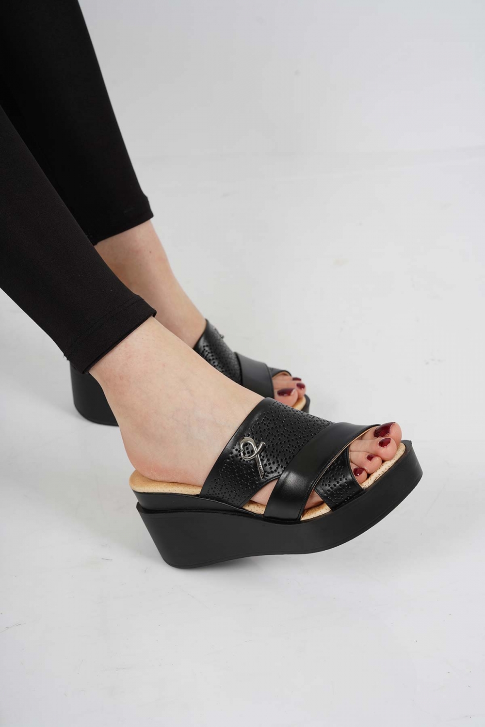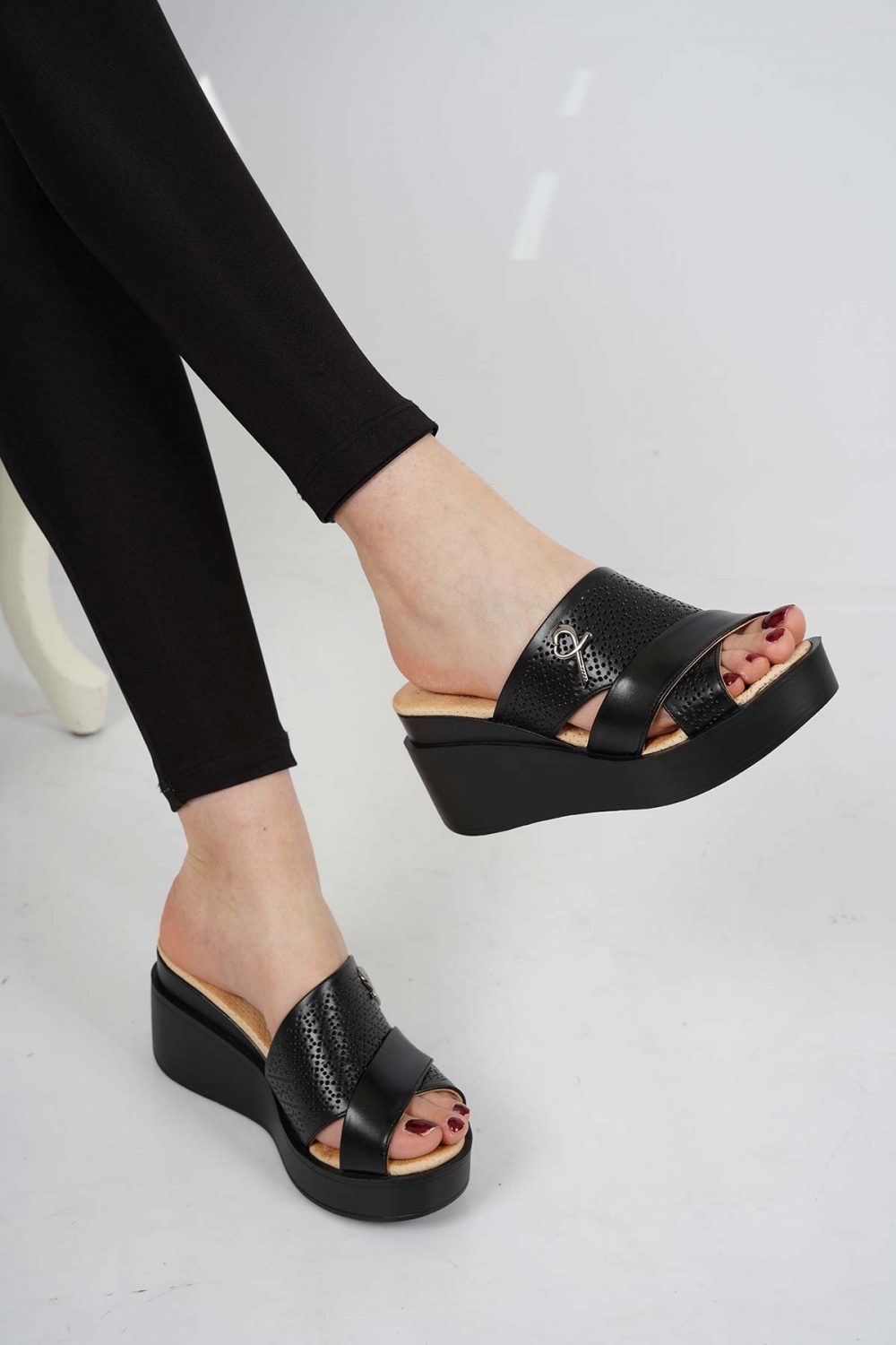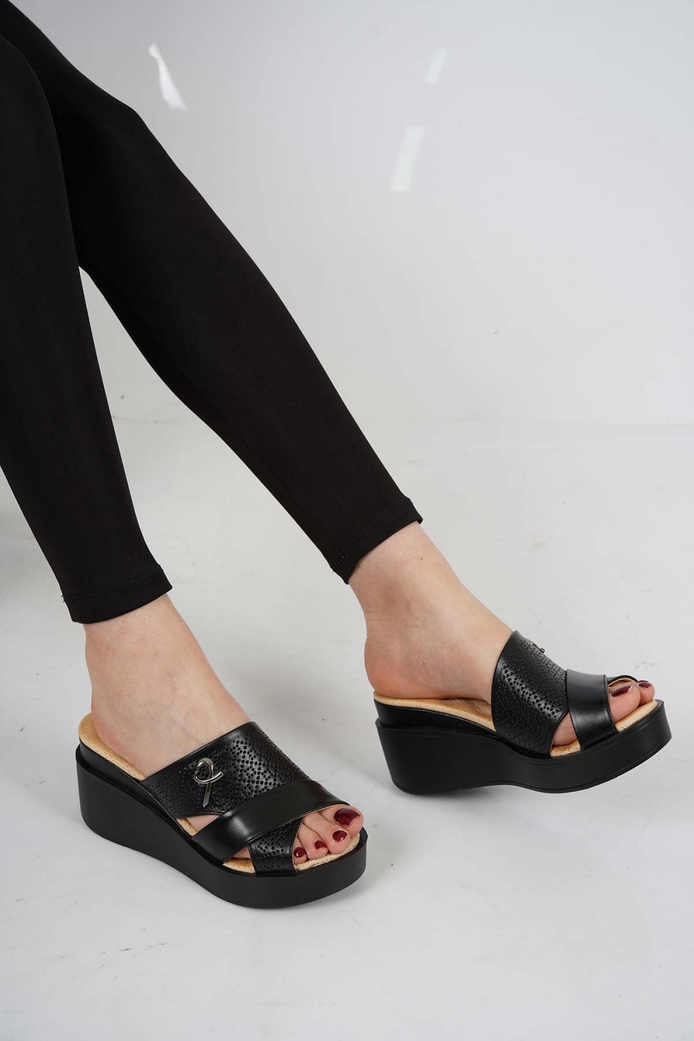 Hakiki Deri Siyah Kadın Dolgu Topuklu Terlik 231229609