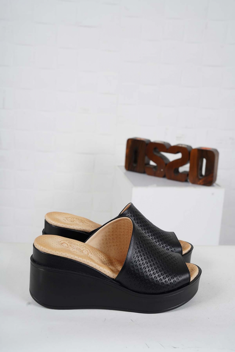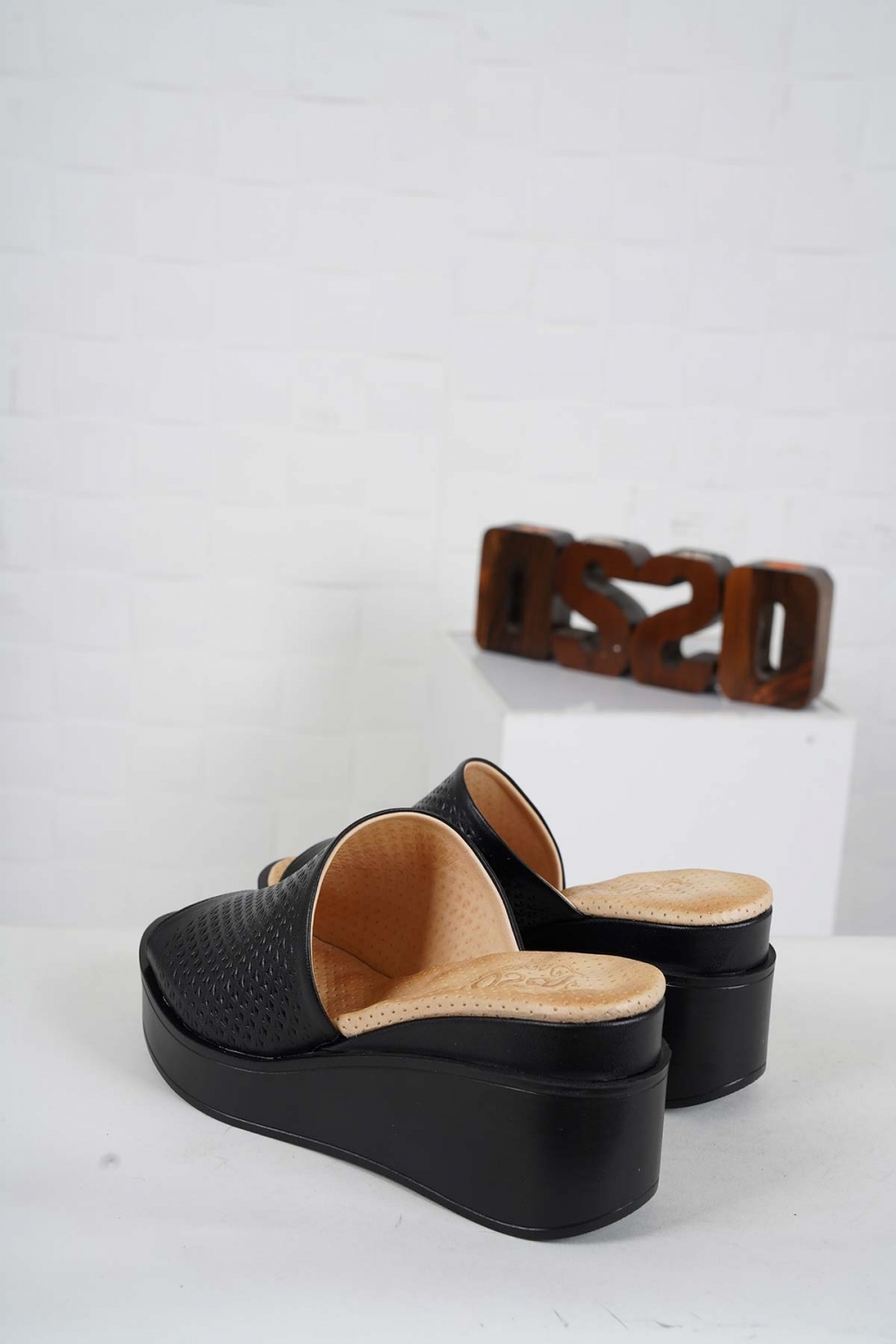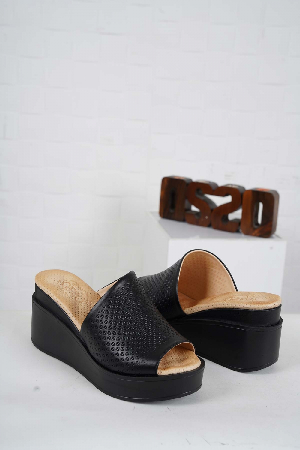 Hakiki Deri Siyah Kadın Dolgu Topuklu Terlik 231229610