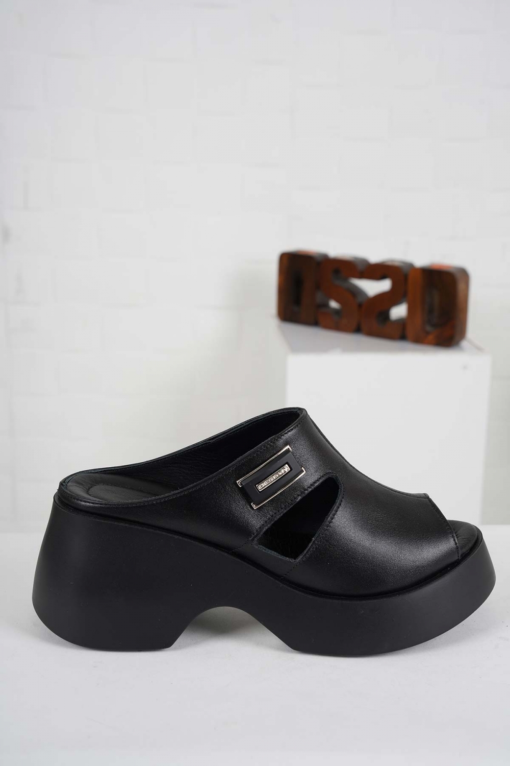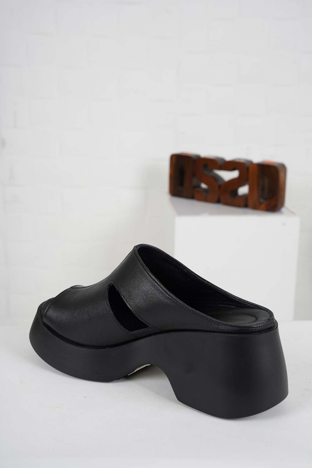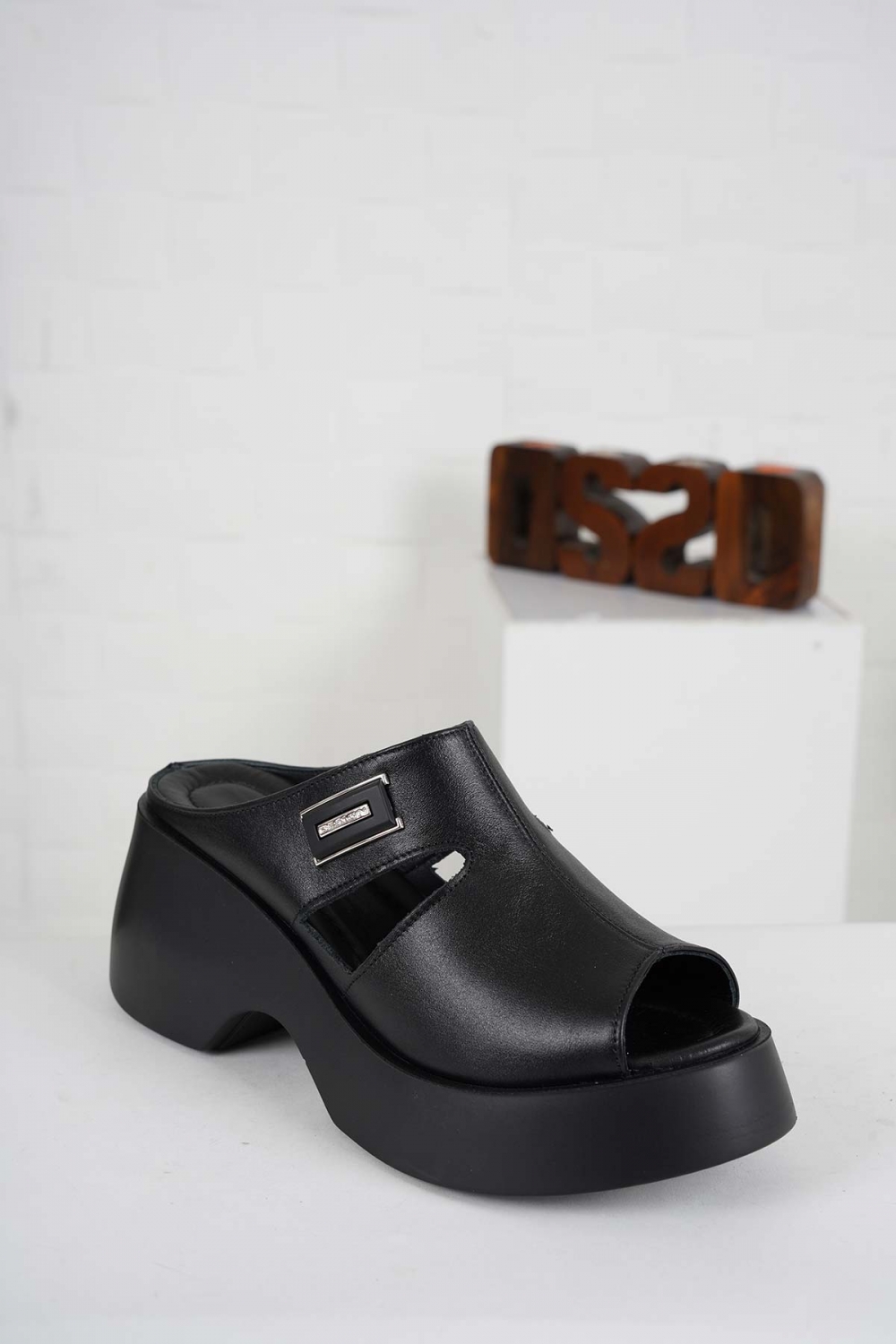 Hakiki Deri Siyah Kadın Dolgu Topuklu Terlik 261114602