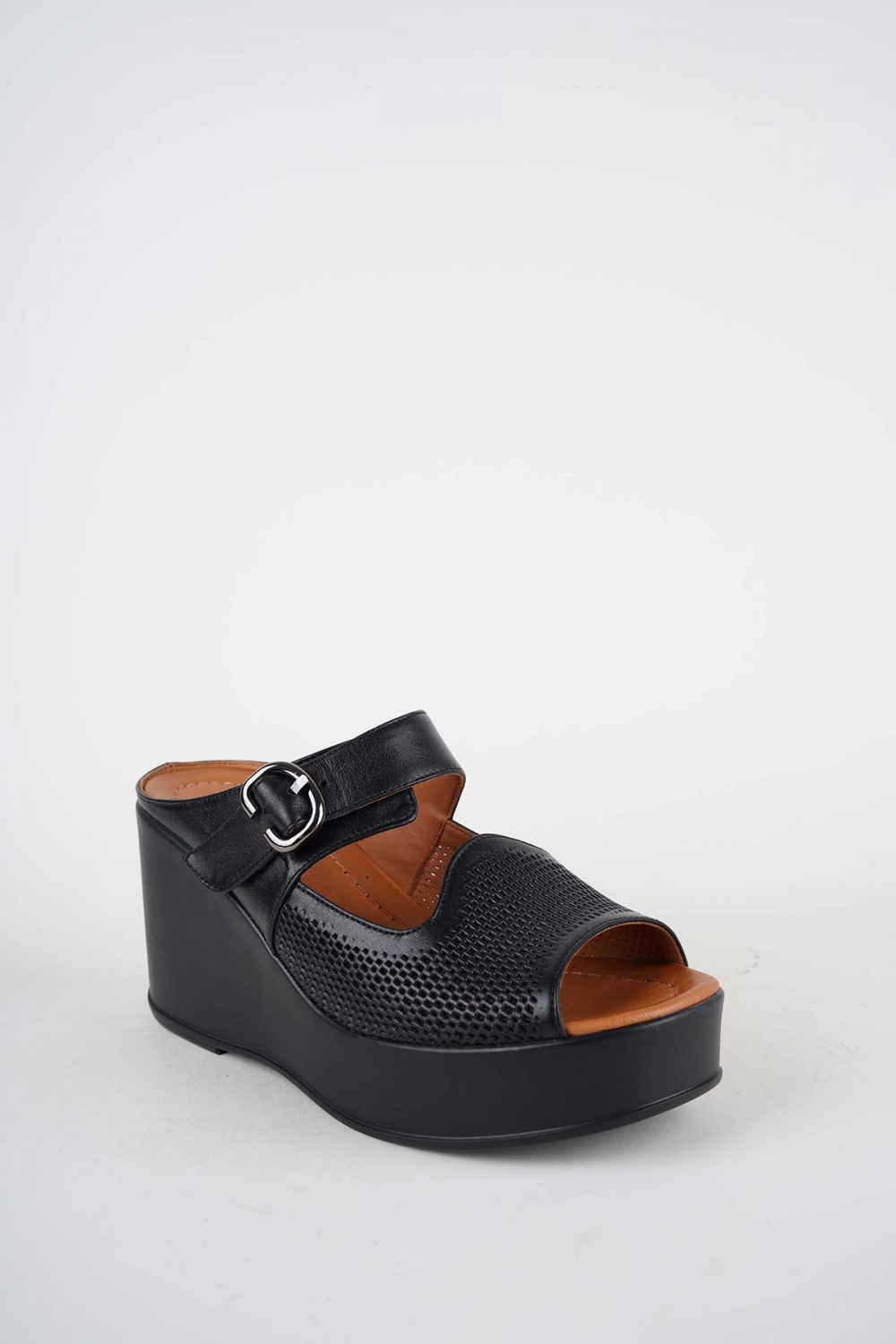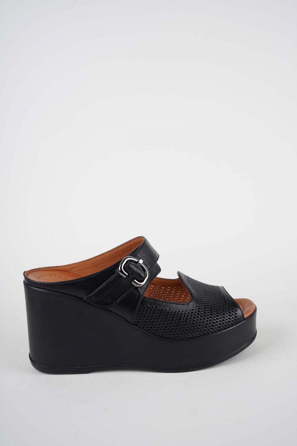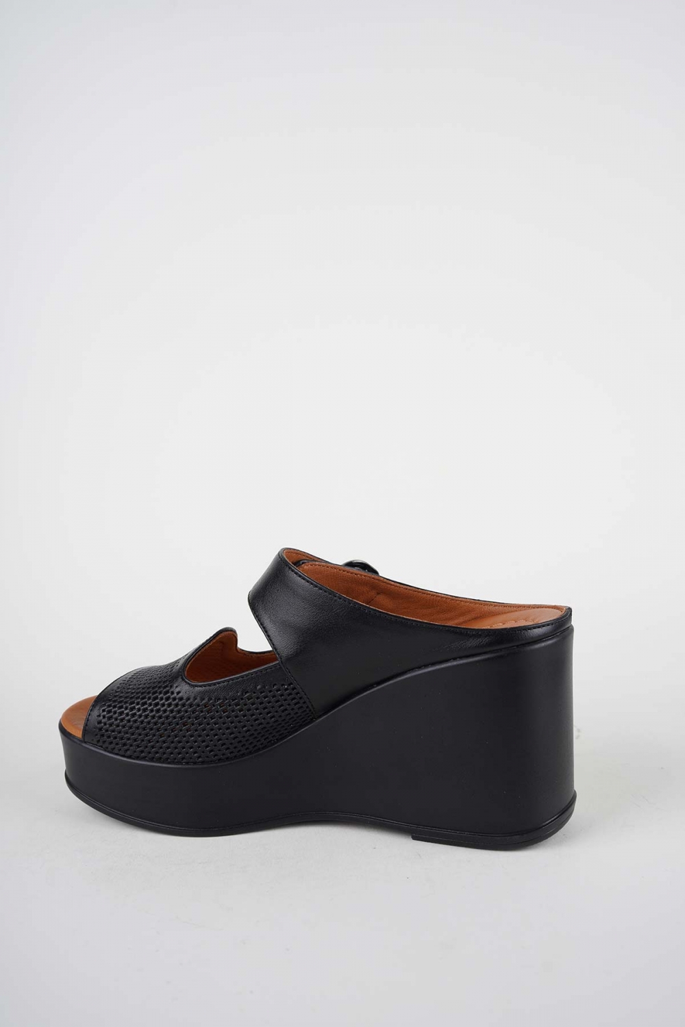 Hakiki Deri Siyah Kadın Dolgu Topuklu Terlik 261229603