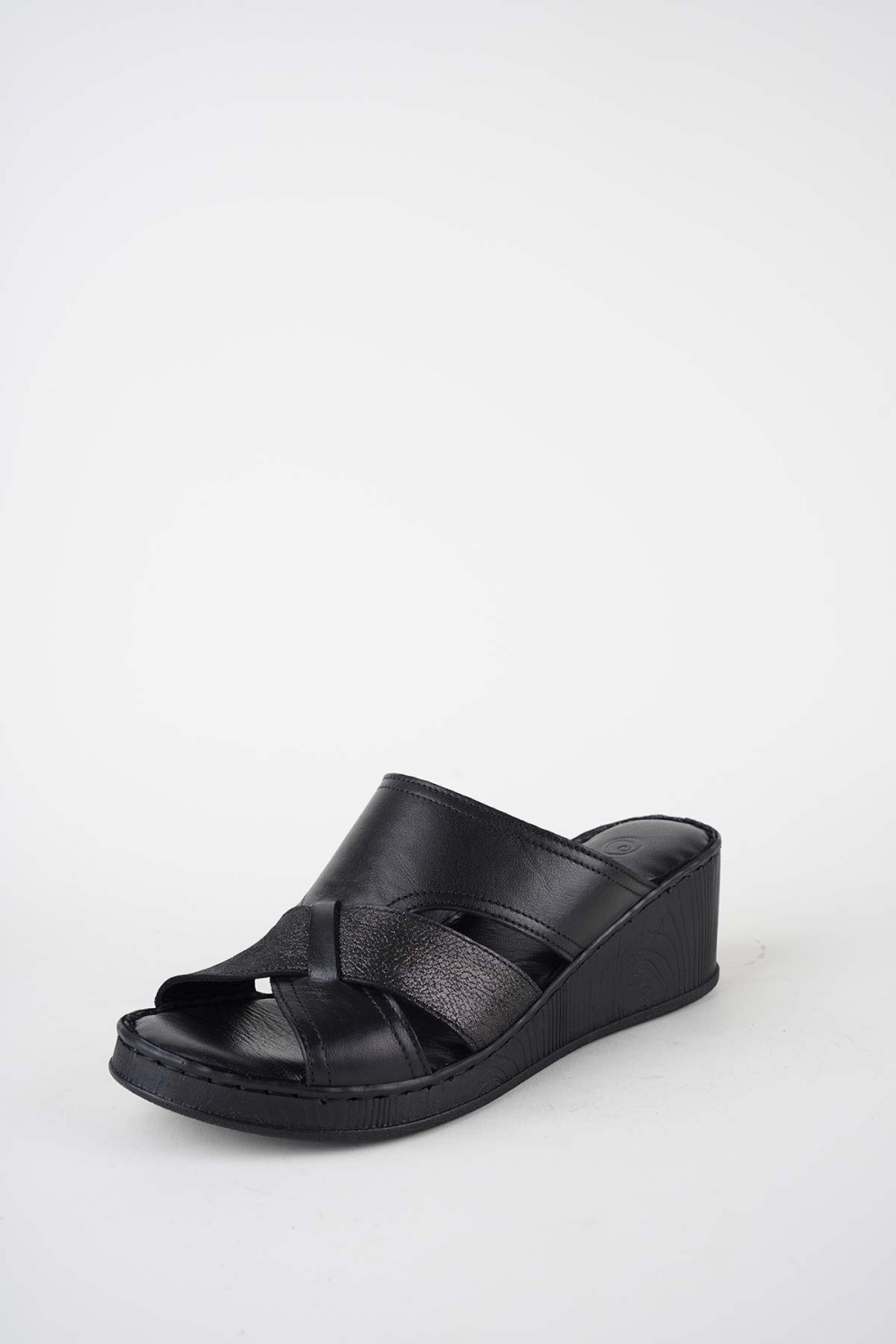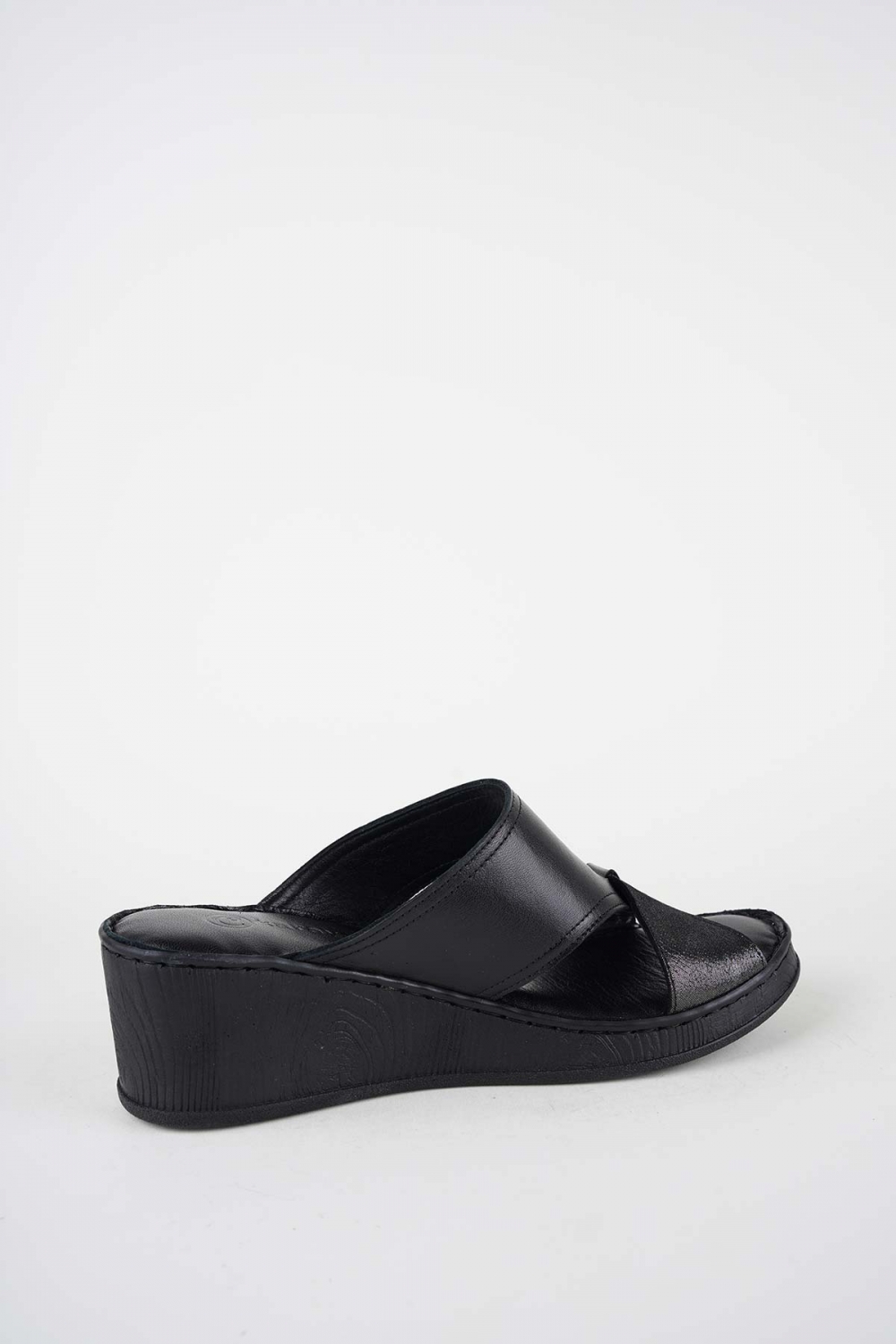 Hakiki Deri Siyah Kadın Dolgu Topuklu Terlik 261245602