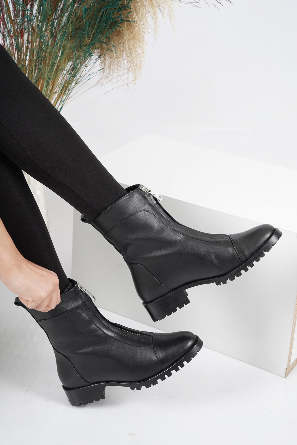 Hakiki Deri Siyah Kadın Düz Bot 212127228