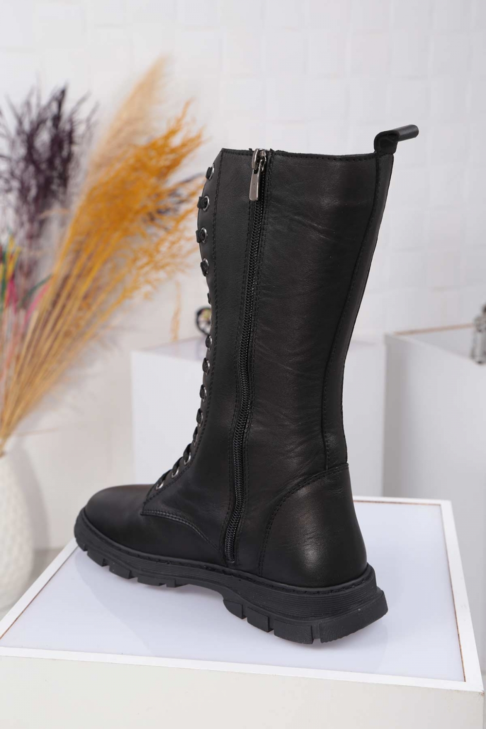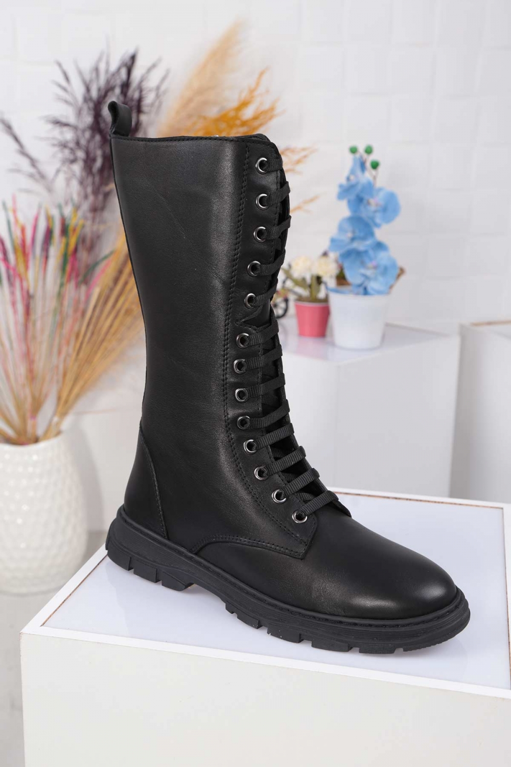 Hakiki Deri Siyah Kadın Düz Çizme 212135301