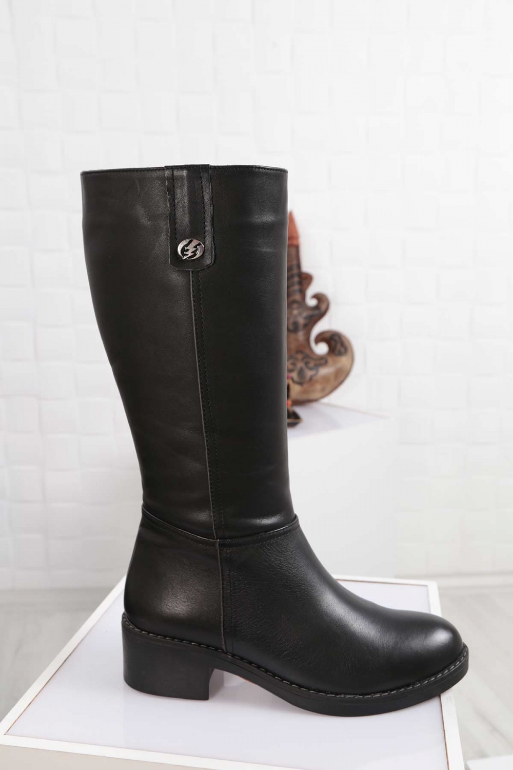 Hakiki Deri Siyah Kadın Düz Çizme 212136306