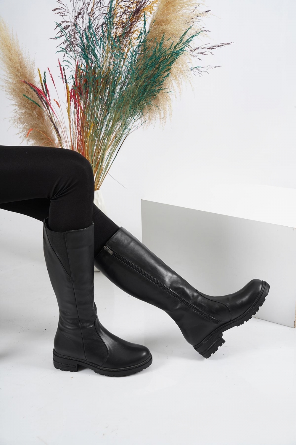 Hakiki Deri Siyah Kadın Düz Çizme 212186302