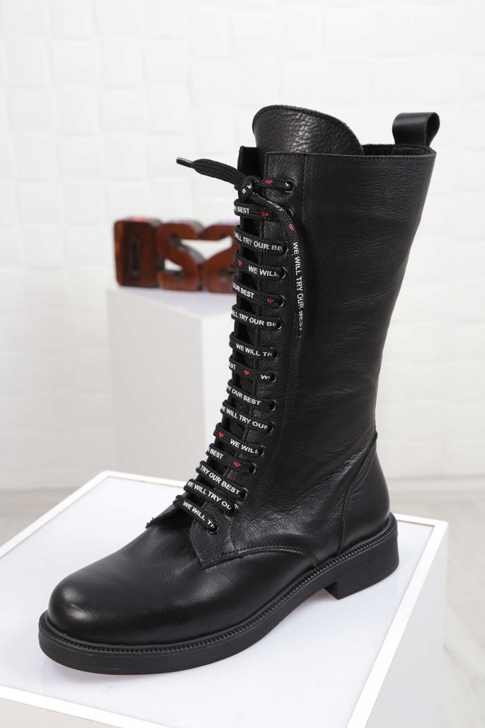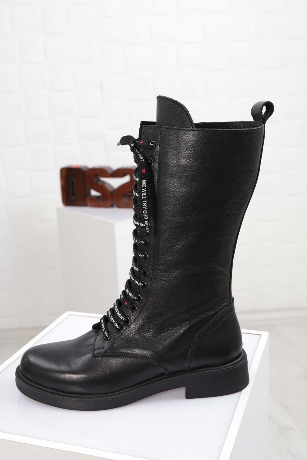 Hakiki Deri Siyah Kadın Düz Çizme 222186304