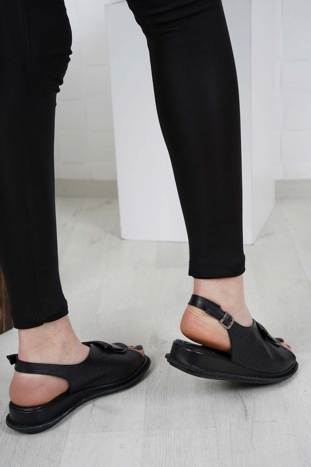 Hakiki Deri Siyah Kadın Düz Sandalet 261141502