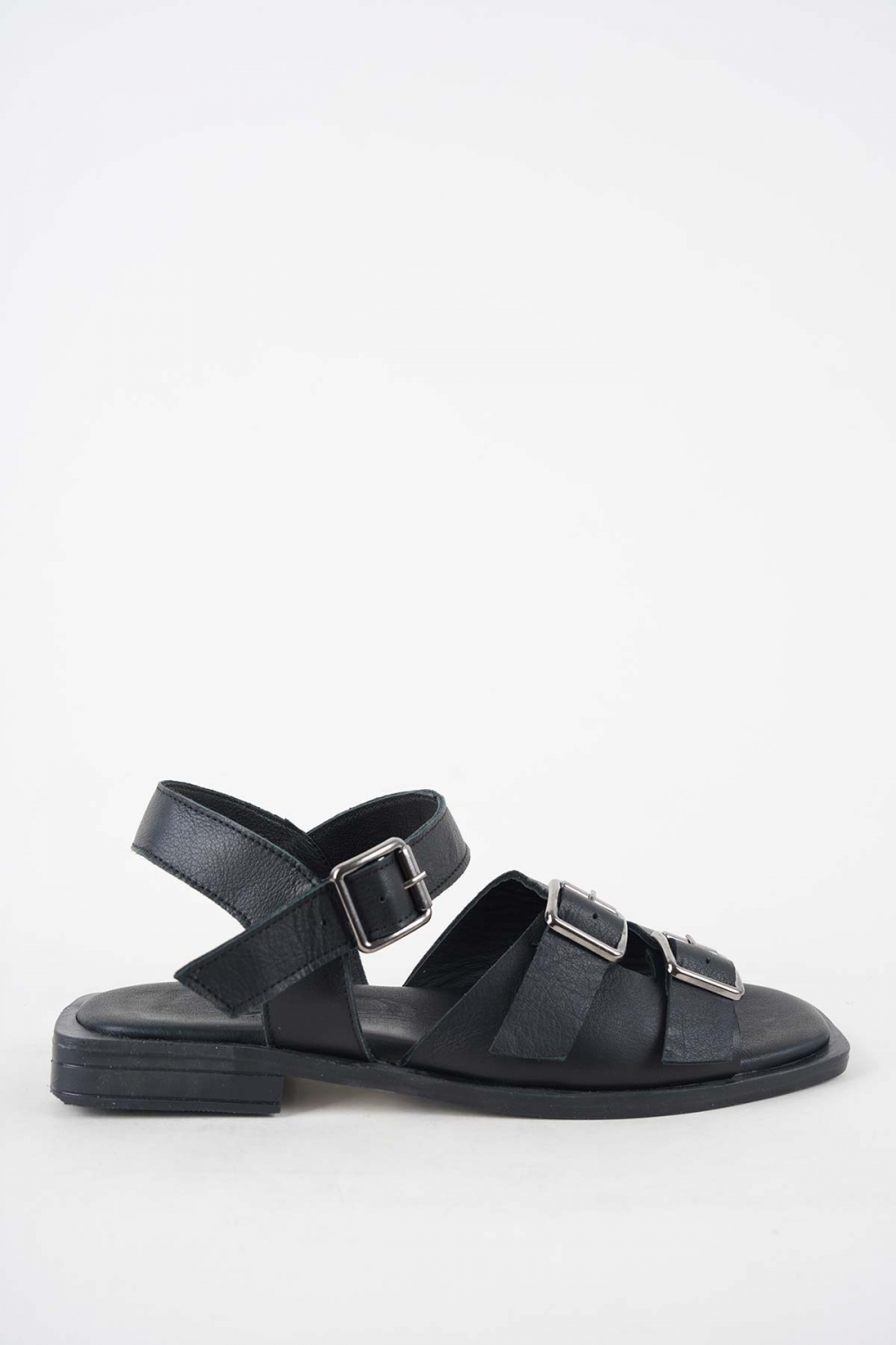 Hakiki Deri Siyah Kadın Düz Sandalet 251103505