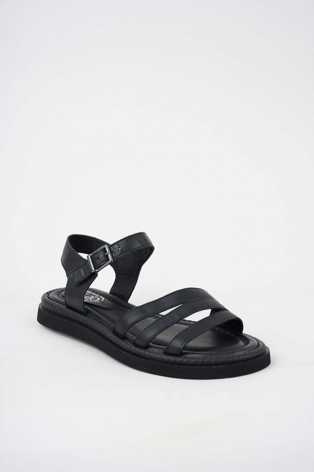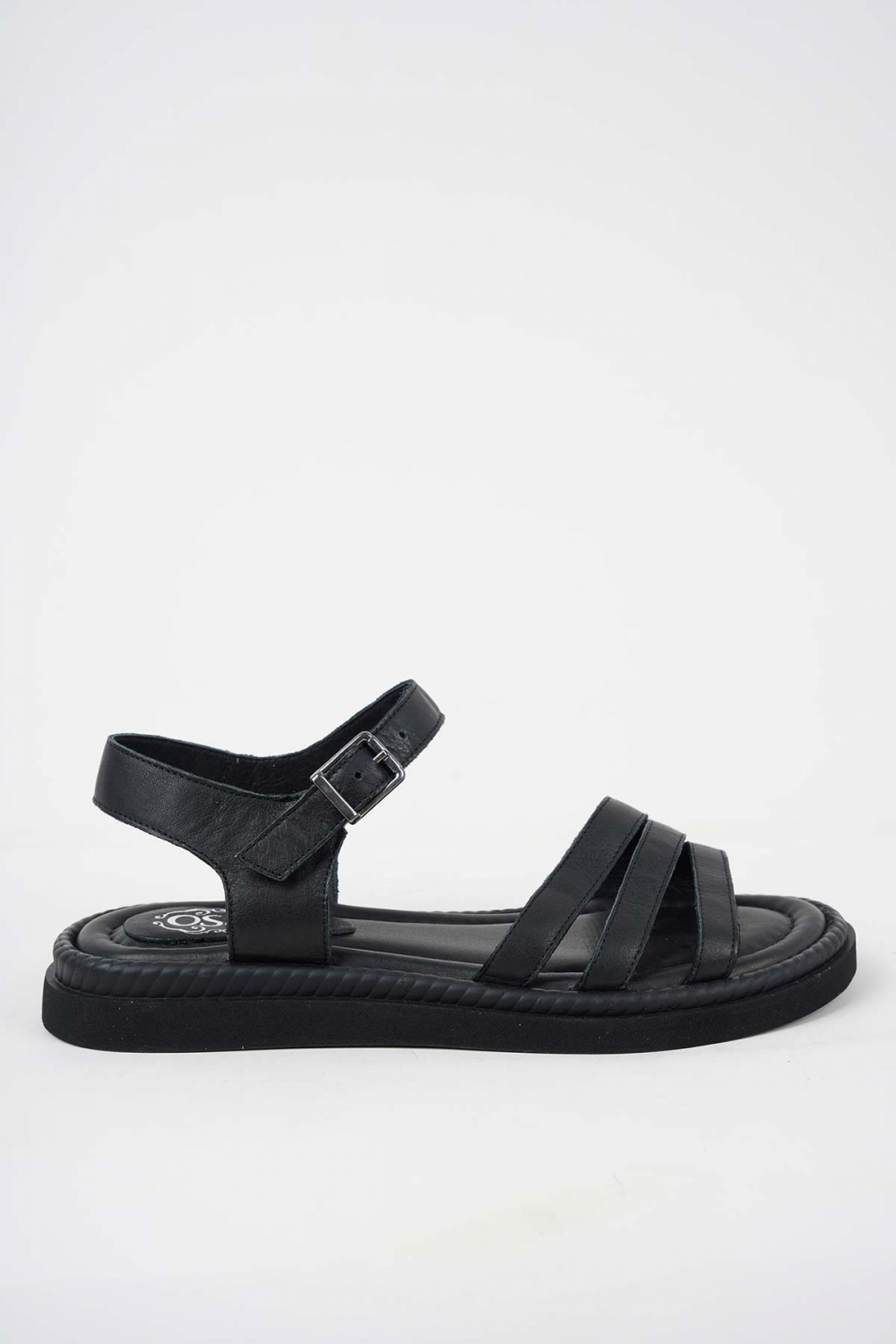 Hakiki Deri Siyah Kadın Düz Sandalet 261141501