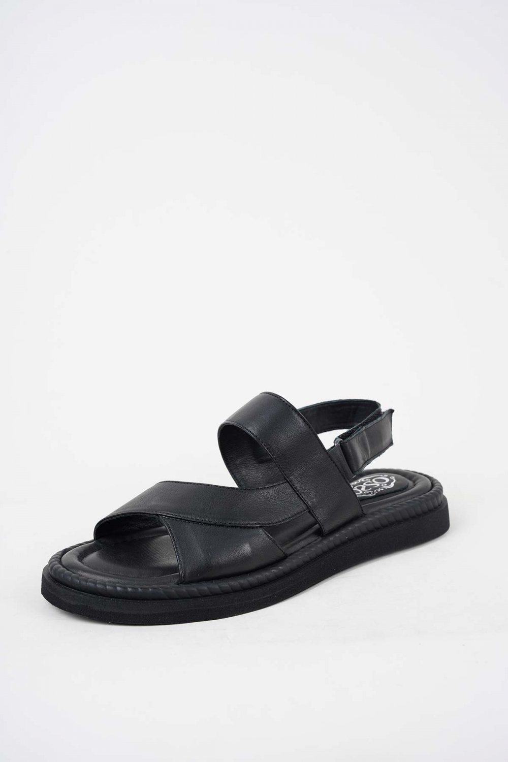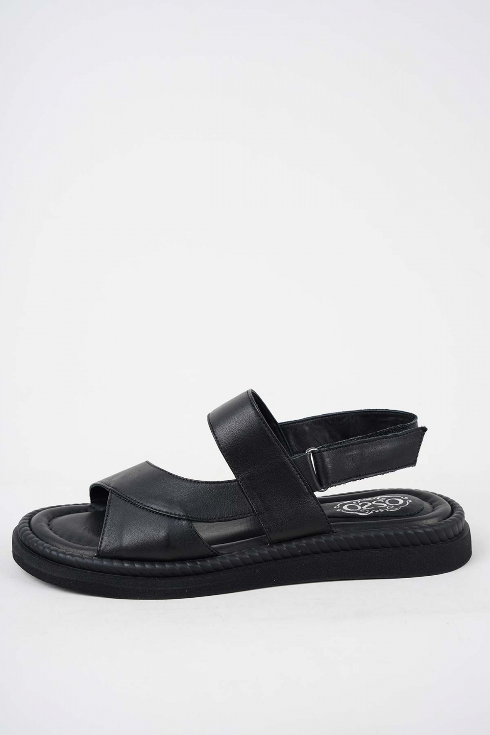 Hakiki Deri Siyah Kadın Düz Sandalet 261141501