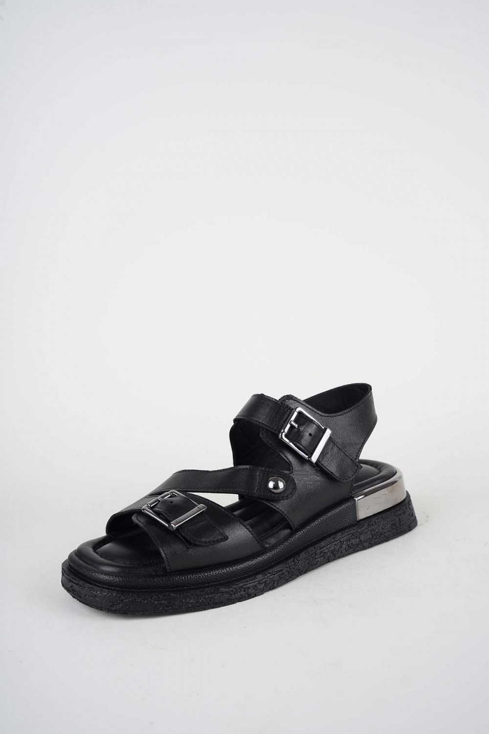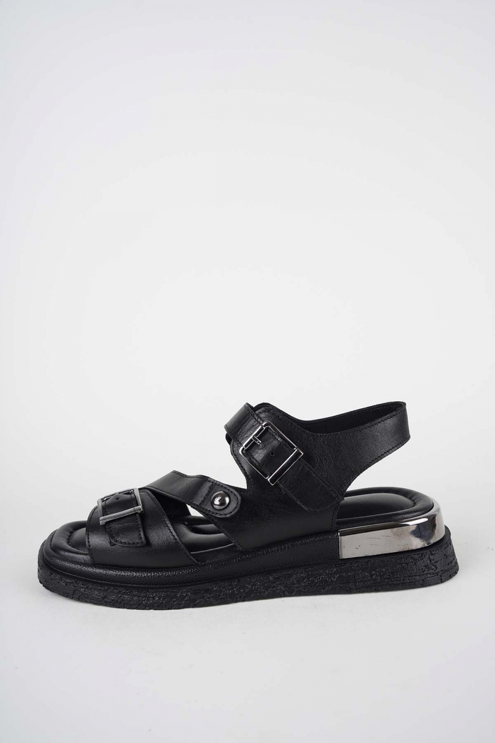 Hakiki Deri Siyah Kadın Düz Sandalet 261118503