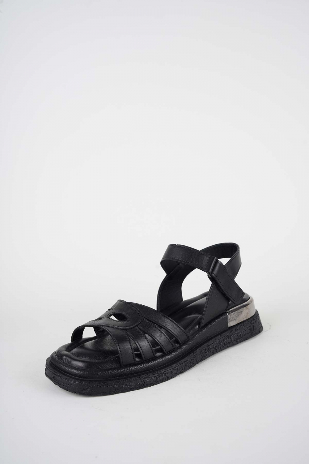 Hakiki Deri Siyah Kadın Düz Sandalet 261118505