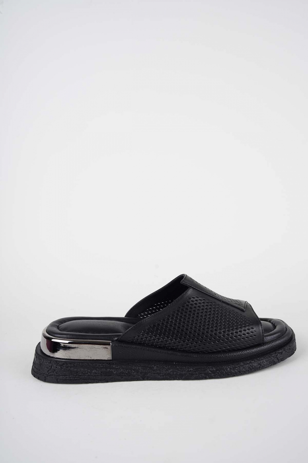 Hakiki Deri Siyah Kadın Düz Terlik 261118601