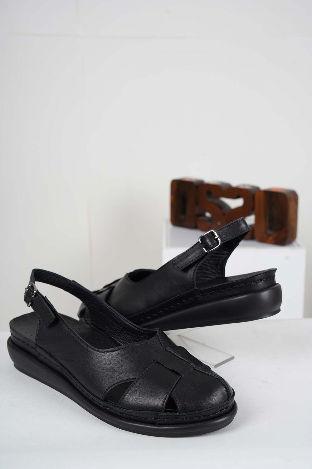 Hakiki Deri Siyah Kadın Komfort Sandalet 241177503