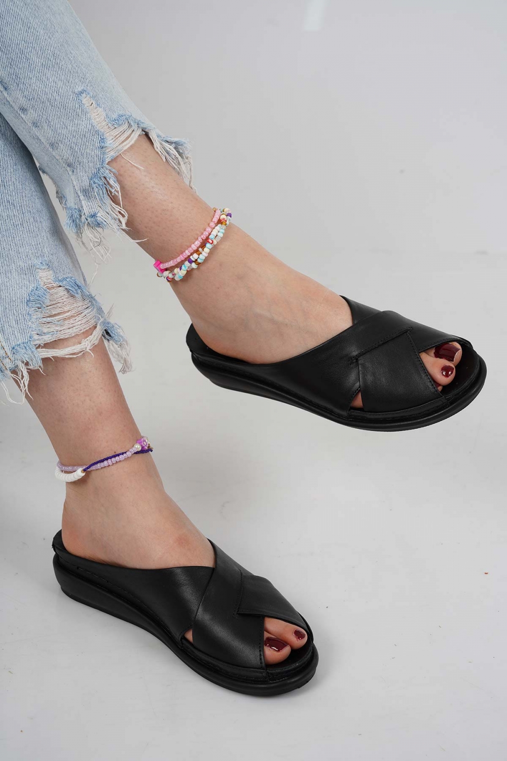 Hakiki Deri Siyah Kadın Komfort Terlik 231177601