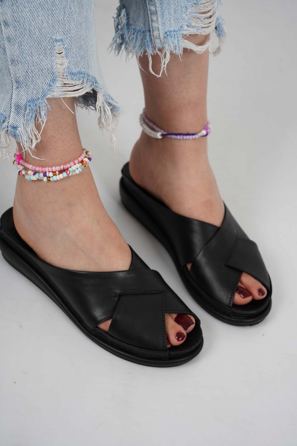 Hakiki Deri Siyah Kadın Dolgu Topuklu Terlik 261114603