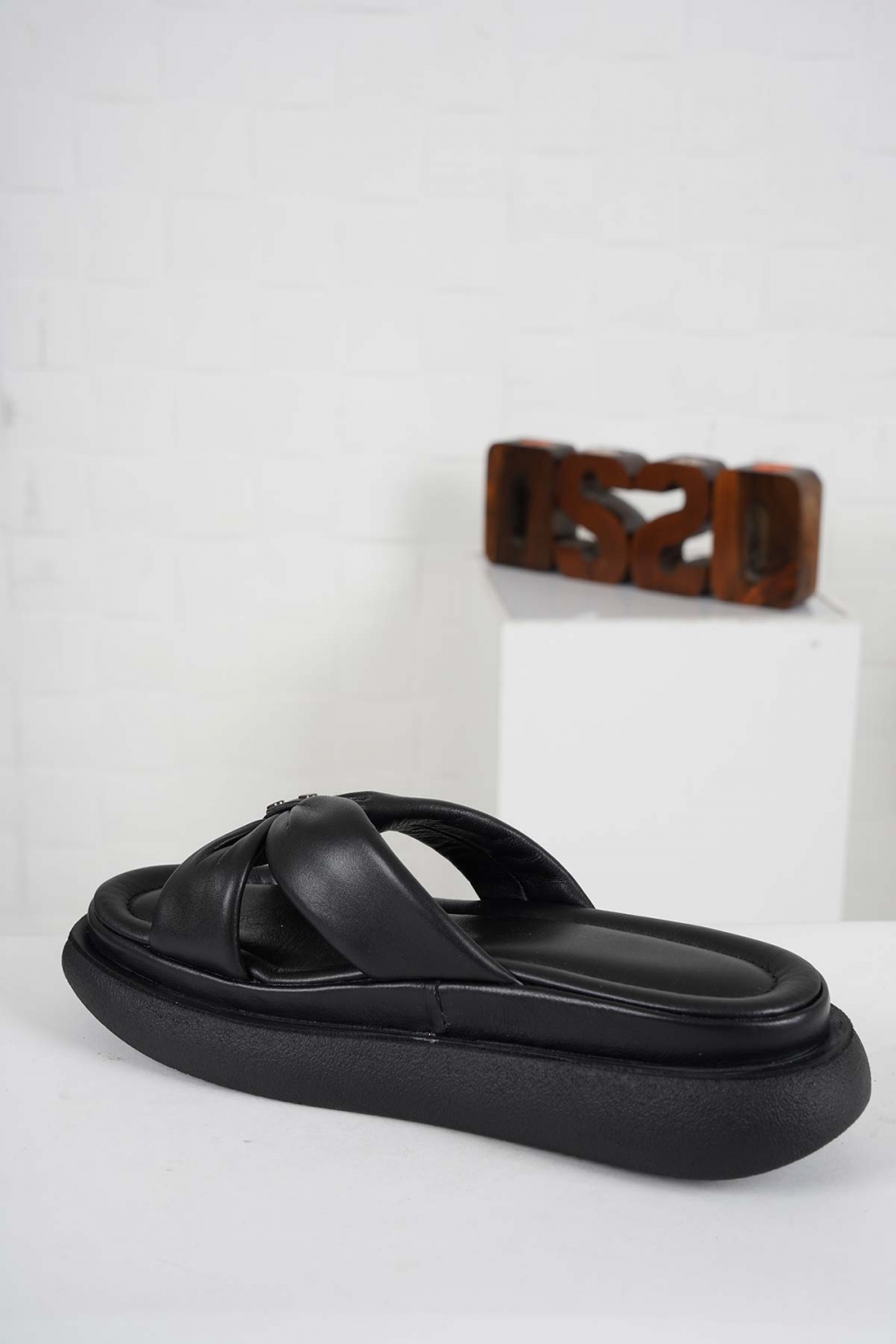 Hakiki Deri Siyah Kadın Dolgu Topuklu Terlik 261114603