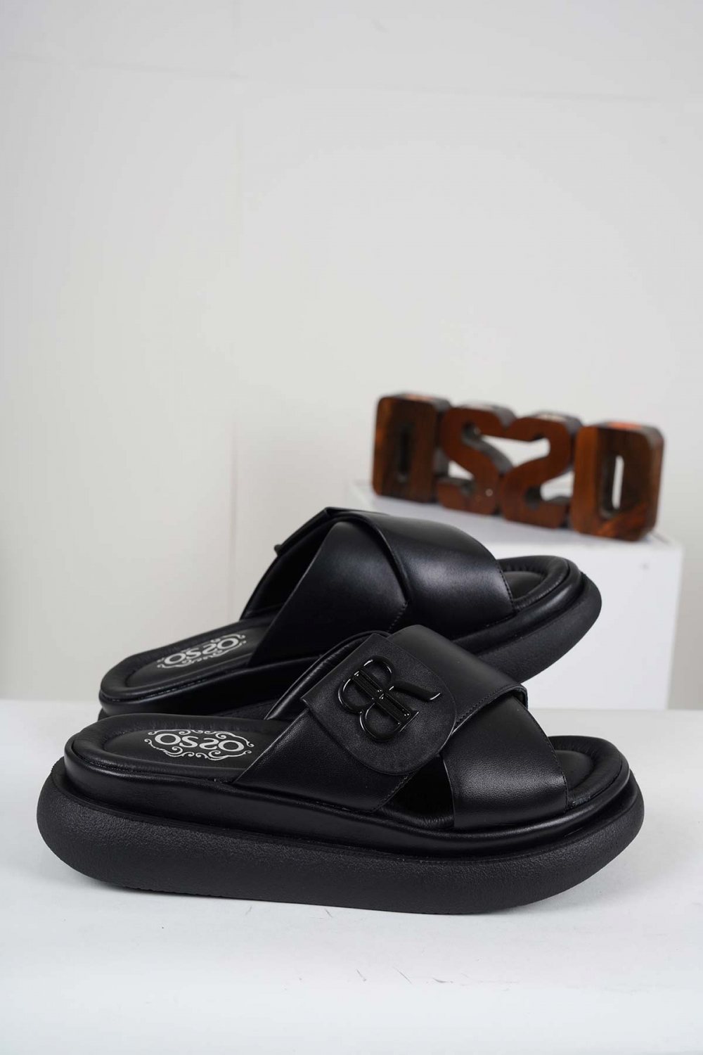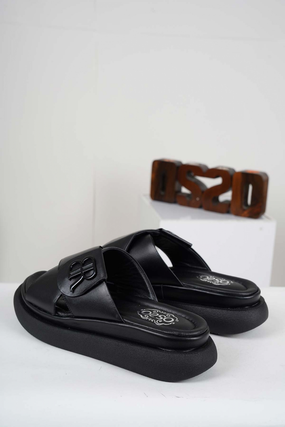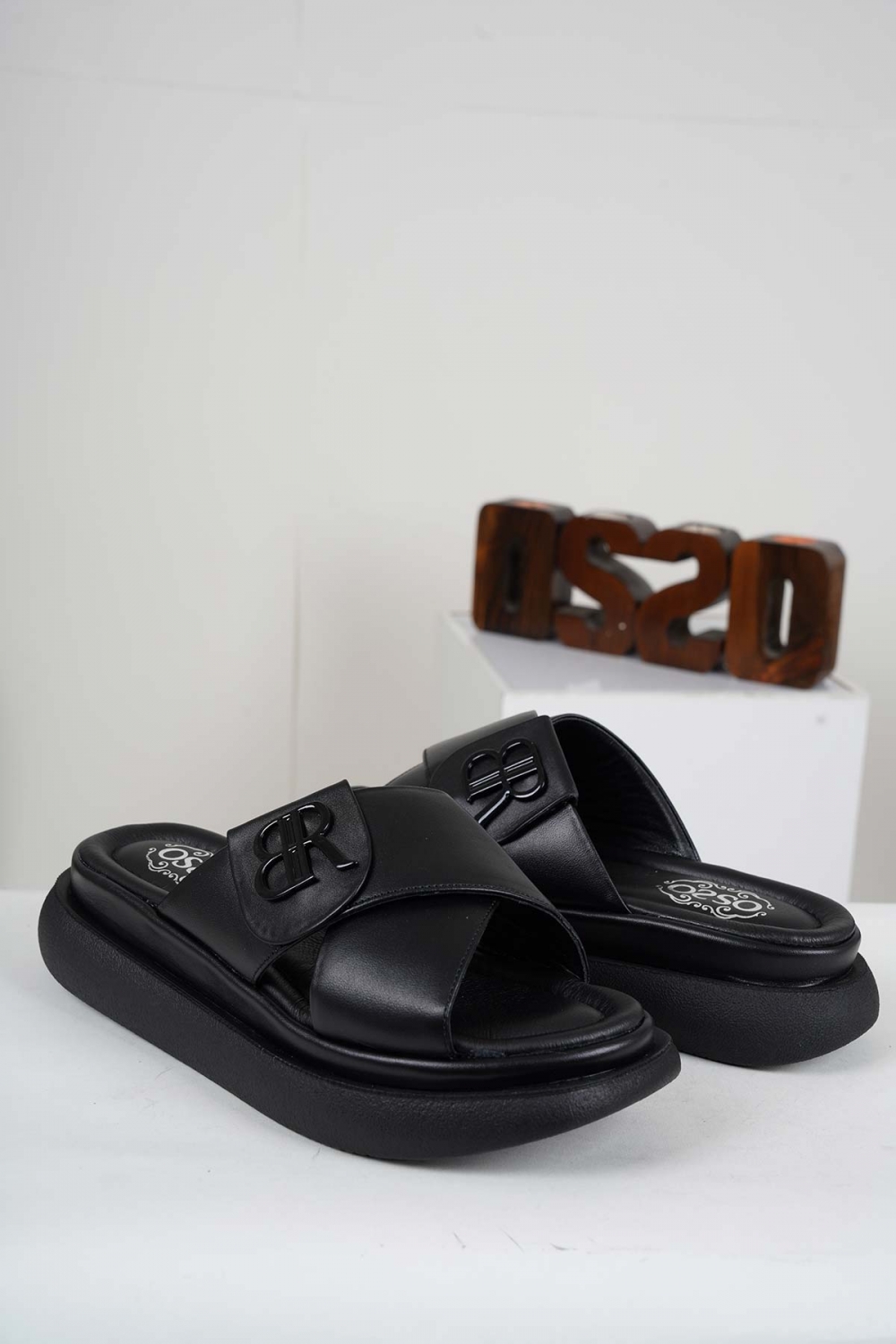Hakiki Deri Siyah Kadın Komfort Terlik 241229605