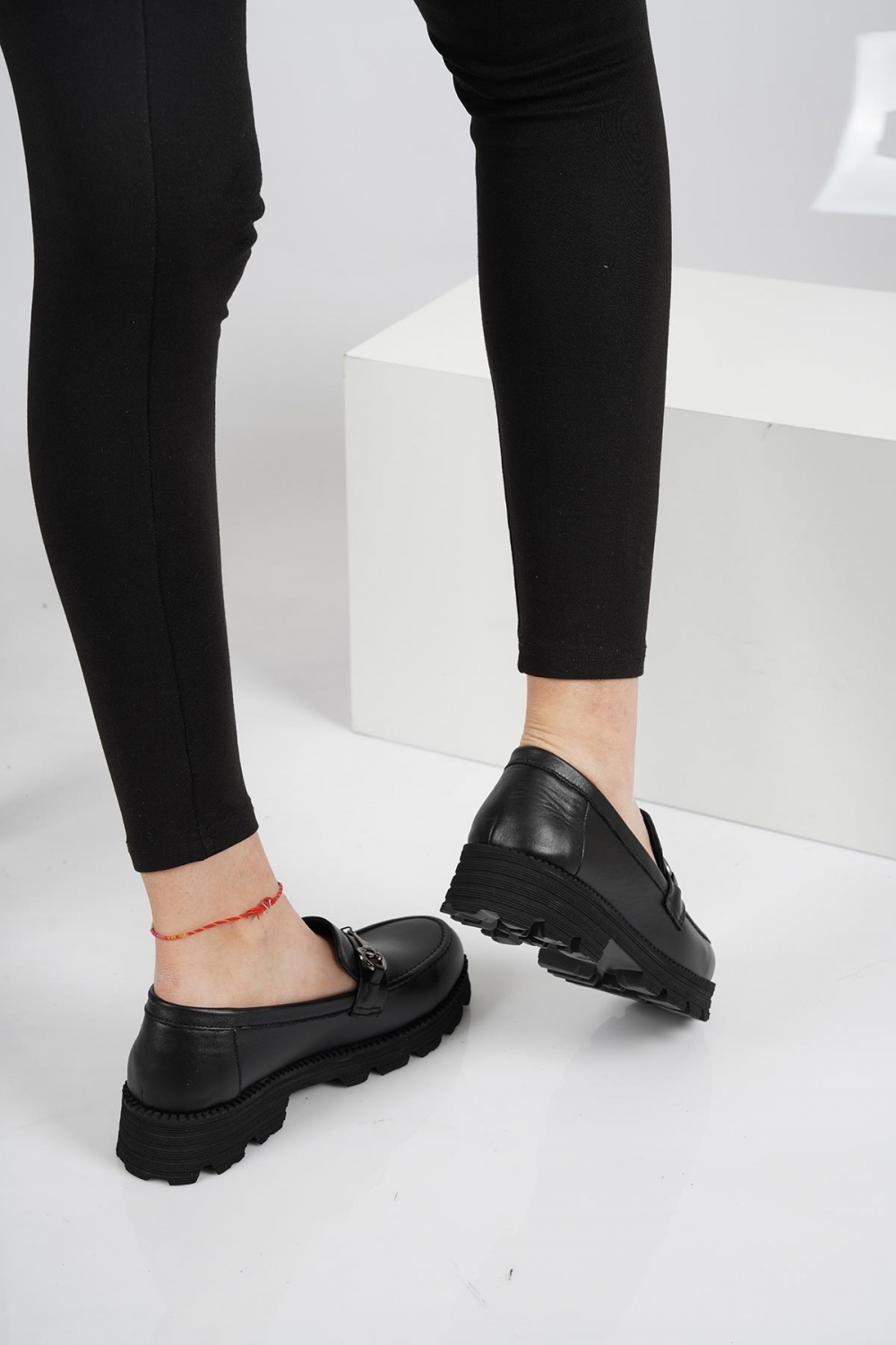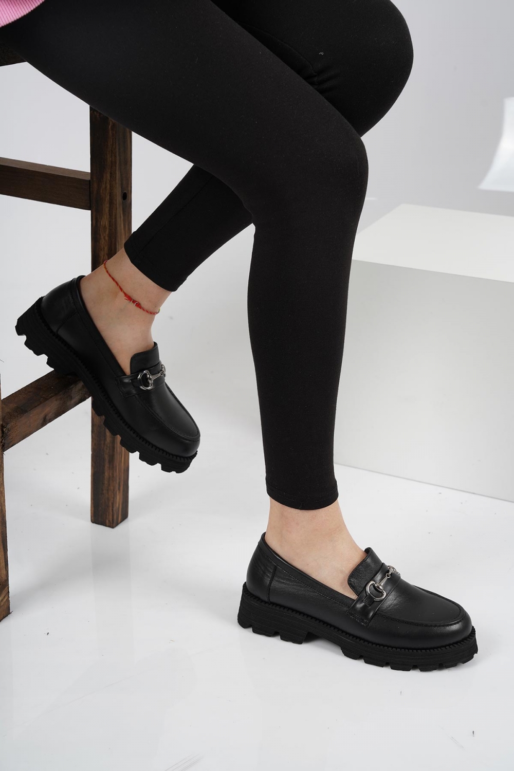 Hakiki Deri Siyah Kadın Makosen Ayakkabı 222134101