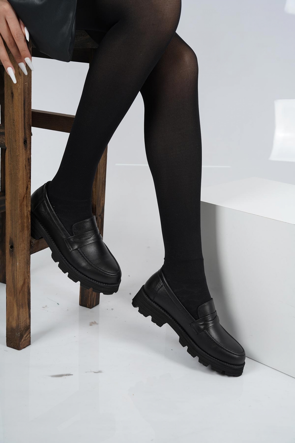 Hakiki Deri Siyah Kadın Makosen Ayakkabı 222134102