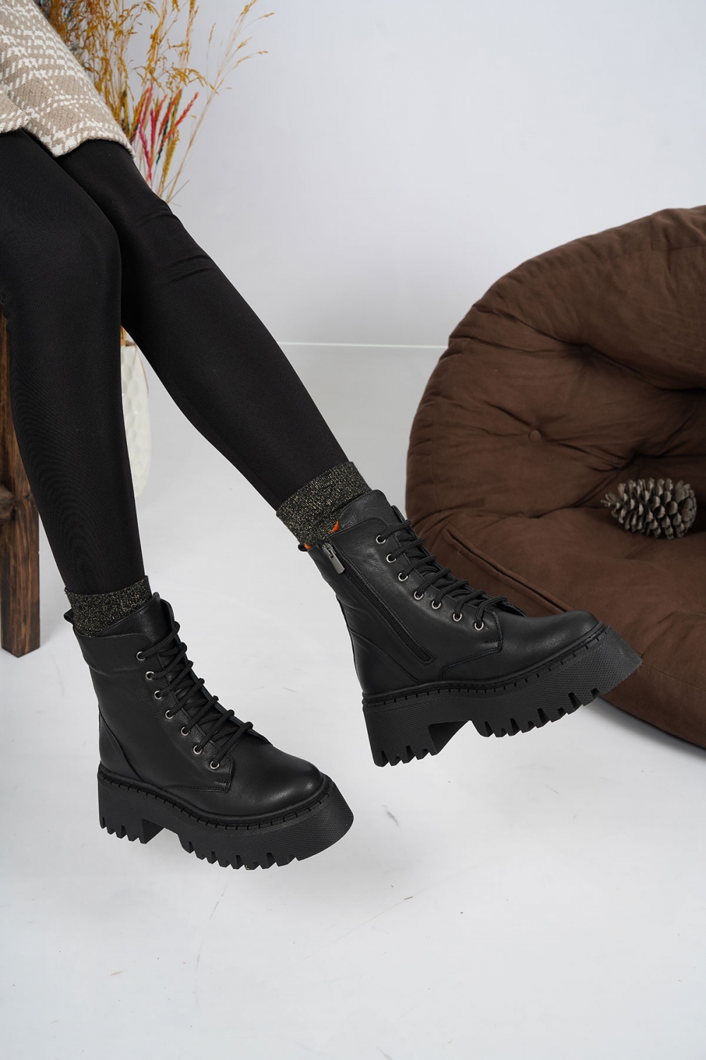 Hakiki Deri Kürklü Siyah Kadın Casual Bot 252189203