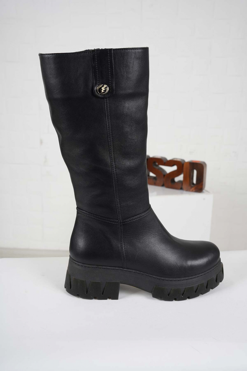 Hakiki Deri Siyah Kadın Postal Çizme 232136303