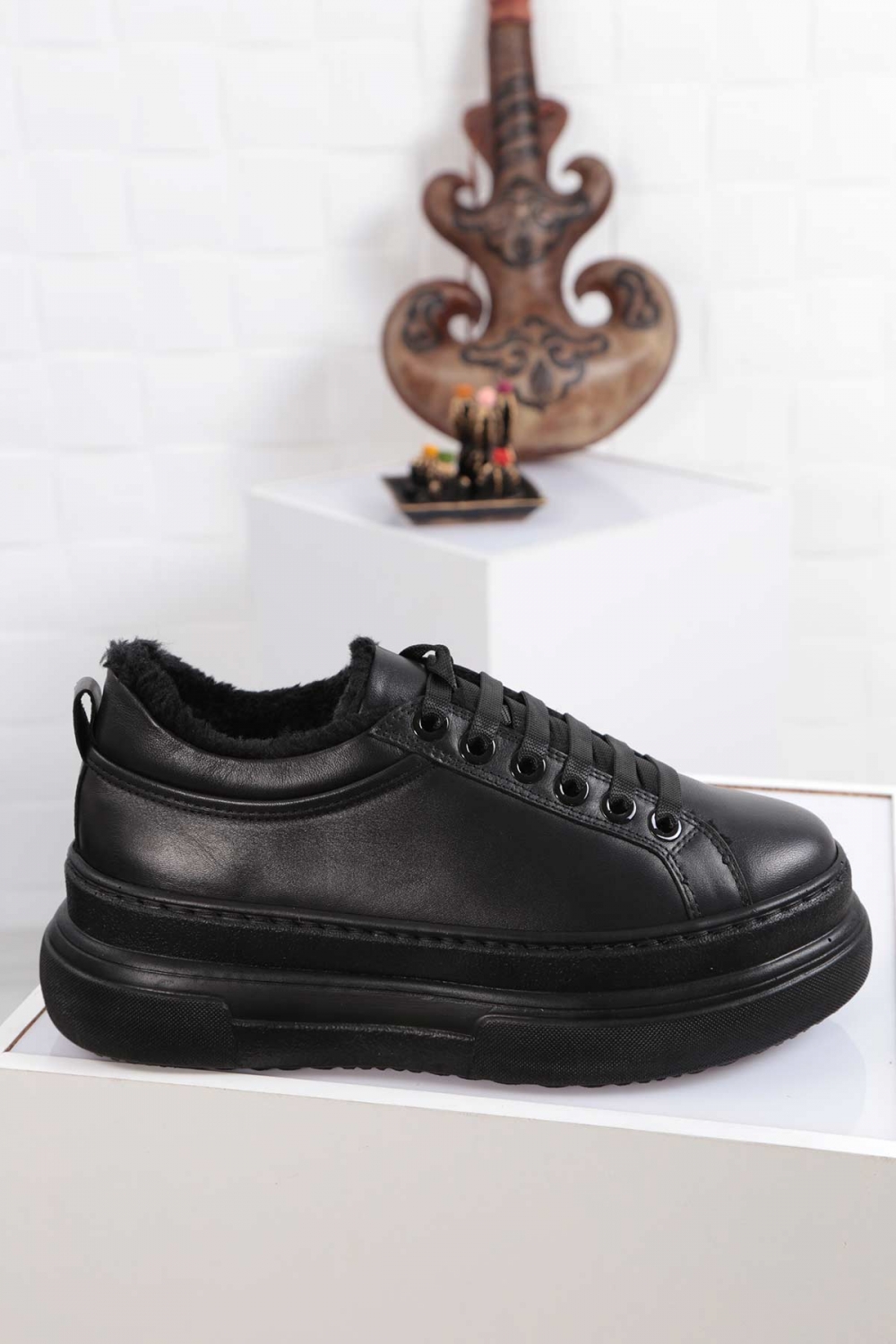 Hakiki Deri Siyah Kadın Sneaker Ayakkabı 212225105