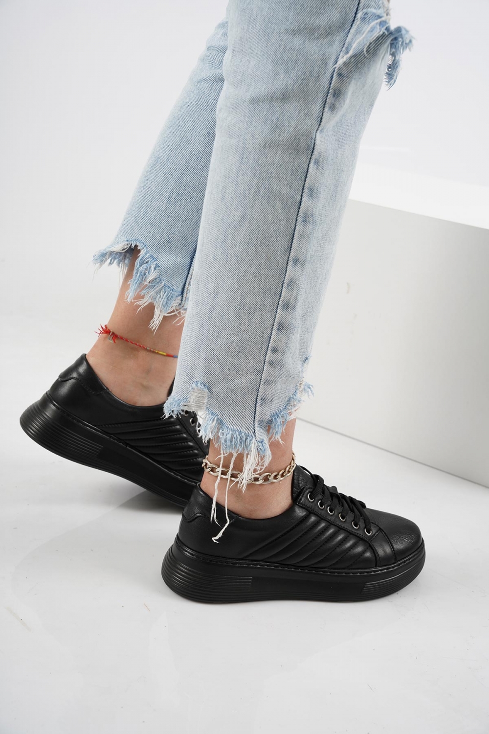 Hakiki Deri Siyah Kadın Sneaker Ayakkabı 222116101