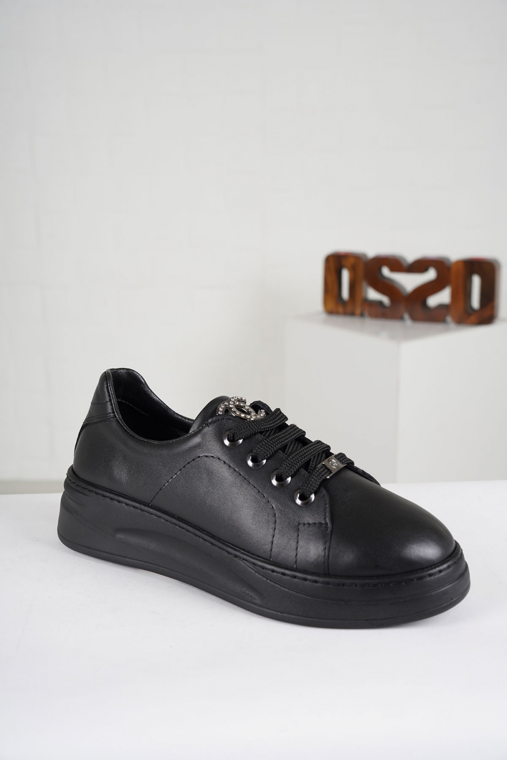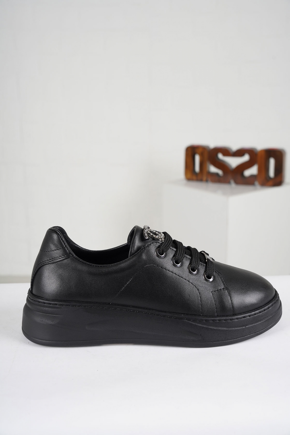 Hakiki Deri Siyah Kadın Sneaker Ayakkabı 252114101